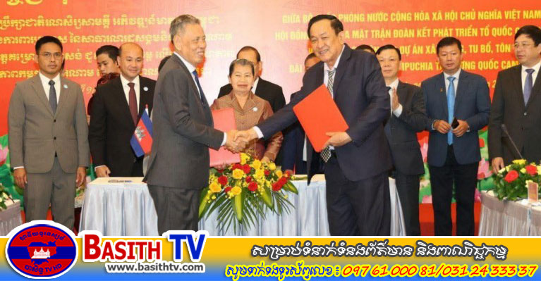 ភ្នំពេញ. ៖ សម្តេចកិត្តិសង្គហបណ្ឌិត ម៉ែន សំអន ប្រធានក្រុមប្រឹក្សាជាតិរណសិរ្ស សាមគ្គីអភិវឌ្ឍន៍មាតុភូមិកម្ពុជា និង ឯកឧត្តម ឧត្តមសេនីយ៍ឯក Vo Minh Luong អនុរដ្ឋមន្ត្រីក្រសួងការពារប្រទេស ប្រធានគណៈប្រតិភូ បានដឹកនាំកិច្ចប្រជុំលើកទី ៨ ស្តីពីការអនុវត្តគម្រោងសាងសង់ ជួសជុល កែលំអរ…