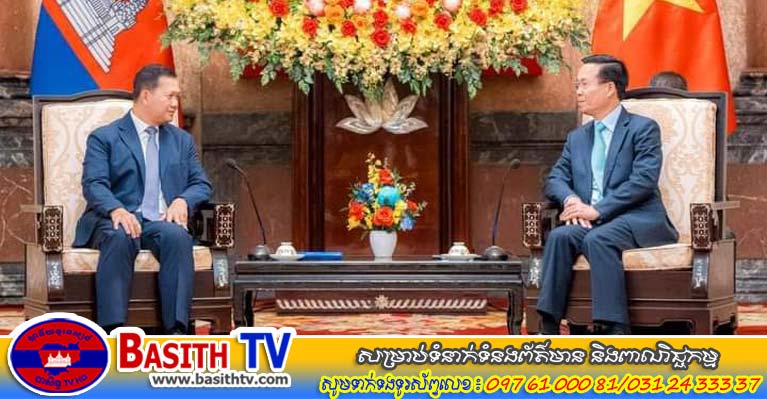 សម្តេចធិបតី ហ៊ុន ម៉ាណែត អញ្ជេីញជួបសម្តែងការគួរសមជាមួយ ឯកឧត្តម វ៉ វ៉ាន់ធឿង ប្រធានរដ្ឋវៀតណាម នៅរដ្ឋធានីហាណូយ