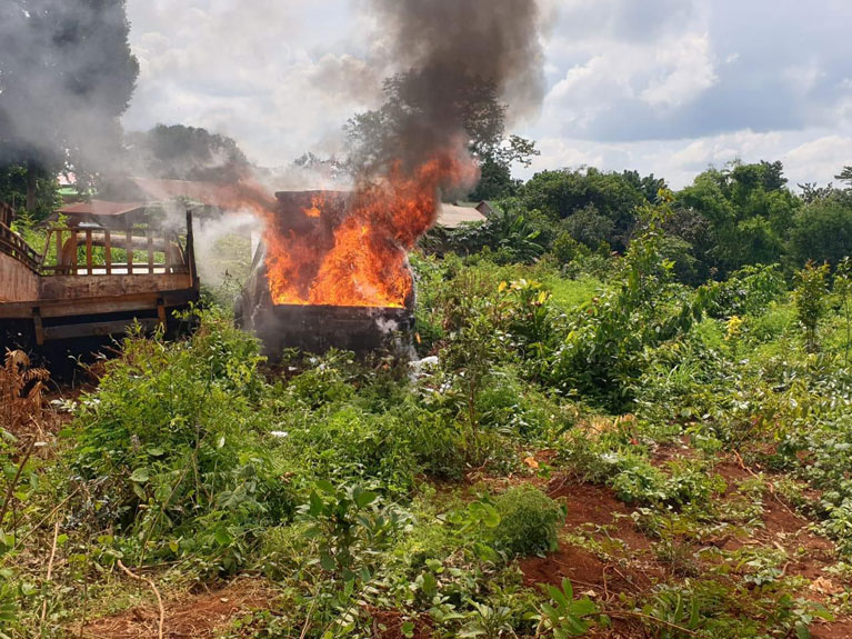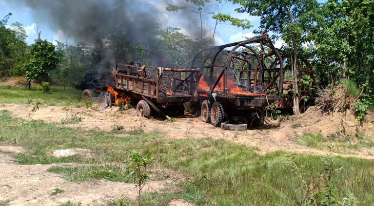 អាវុធហត្ថខេត្តក្រចេះដុតបំផ្លាញ់រថយន្ដបាកុងដឹកឈើចំនួន៧គ្រឿងទៀត នៅស្រុកសំបូរ