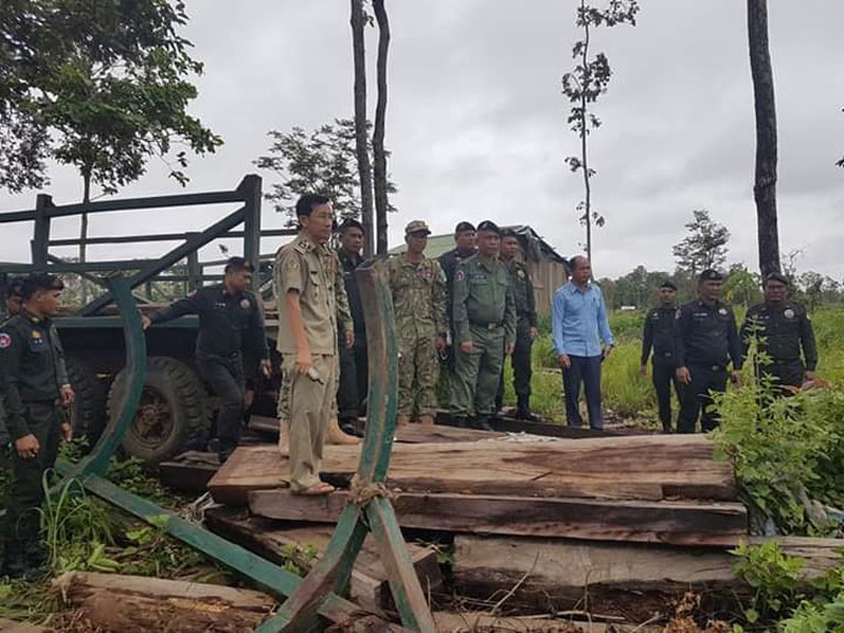 សមត្ថកិច្ចចំរុះចុះរុករករថយន្តបាកុងដឹកឈើល្មើសច្បាប់ដើម្បីធ្វើការកំទេចចោល