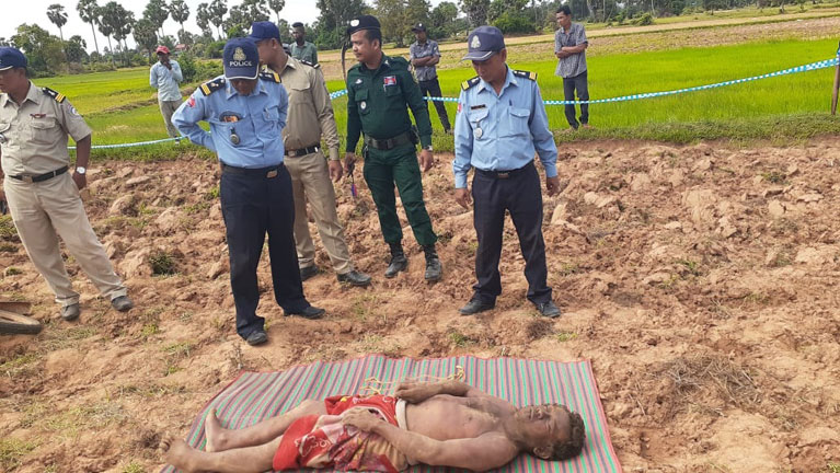 អ្នកបើករថយន្តដឹកកម្មកររោងចក្របានប្រទះឃើញសាកសពបុរសម្នាក់ដេកស្លាប់ក្នុងវាលស្រែ