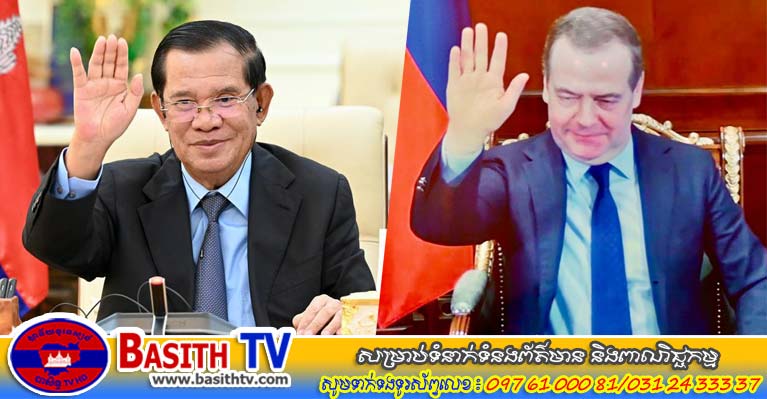 សម្តេចតេជោ ហ៊ុន សែន អញ្ជើញជួបសន្ទនាជាមួយ ឯកឧត្តម ឌីម៉េទ្រី ម៉េដវេដេវ (Dimitri Medvedev) ប្រធានគណបក្សរុស្ស៊ីរួមរួម តាមប្រព័ន្ធវីដេអូ