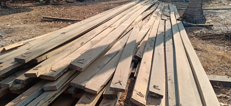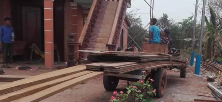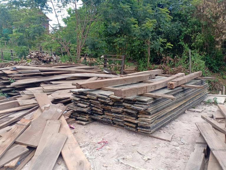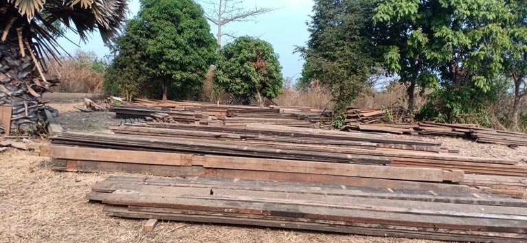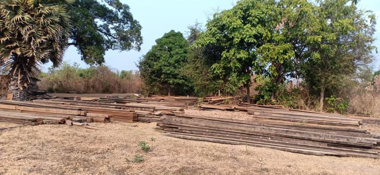 ខេត្តឧត្តរមានជ័យ ៖ នេះហើយជាឈើដែលក្រុមឈ្មួញរកស៊ីដឹកជញ្ជូនឈើថ្មីយកមកវ៉ៃដែកគោលធ្វើជាឈើផ្ទះចាស់ យកមកស្តុកទុកនៅខាងមុខផ្ទះរបស់ខ្លួនស្ថិតនៅក្នុងភូមិស្រះជ្រៃ ឃុំត្រពាំងប្រាសាទស្រុកត្រពាំងប្រាសាទខេត្តឧត្តរមានជ័យ ថាការមិនបង្ក្រាបបទល្មើសពីមេឈ្មួញនោះគឺមកពីយល់មុខរវាងលោក ជៀល សុផល នាយសង្កាត់រដ្ឋាភិបាលព្រៃឈើត្រពាំងប្រាសាទ លោក ហោ លិម មន្ដ្រីបរិស្ថានប្រចាំក្នុងស្រុក ក៏ដូចជំនាញនៅទៅនោះ បានបណ្ដោយឲ្យ មេឈ្មួញឈ្មោះ ខន និងឈ្មោះ ធី ជាក្រុមឈ្មួញរកស៊ីដឹកជញ្ជូន បទល្មើសឈើបានដោយរលូន។