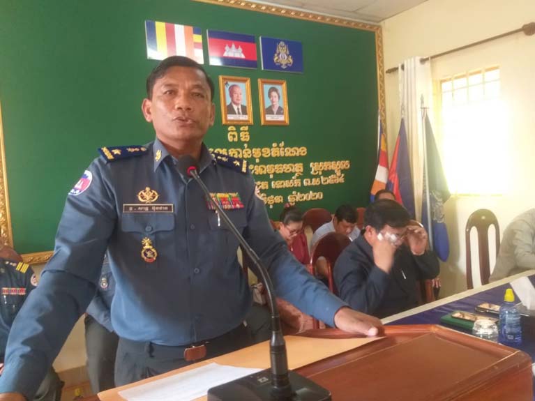 លោក គង់ គឹមនី អភិបាលស្រុក ក៍បានផ្ដាំផ្ញើរដល់ លោក មេបញ្ជាការអាវុធហត្ថដែលទើបនិងទទួលតំណែងថ្មី ឲ្យចេះសាម្គីគ្នា កុំប្រកាន់បក្យពួក និយម កុំគុំគួននិងគ្នា ត្រូវចេះរួបរួមសុខរួមទុកជាមួយ រួមគ្នាធ្វើការ ដើម្បីឲ្យអង្គភាពបានជោគជ័យ ត្រូវអនុវត្តន៍តាមច្បាប់របស់រាជរដ្ឋាភិបាល ព្រោះយើងជាមន្ត្រីនគរបាលយុត្តិធម៍ ត្រូវអនុវត្តន៍តាមក្រិត្យក្រំរបស់ខ្លួន ទៅតាមការណែនាំ គ្រប់ឯកសារកតិយុទ្ធ គោរពតាមបទបញ្ជារផ្ទៃក្នុងរបស់កងកម្លាំងប្រដាប់អាវុធ គោរពតាមបទបញ្ជា មេបញ្ជាការខេត្ត អាជ្ញាធរដែនដី និងត្រូវអនុវត្តន៍ទៅតាមច្បាប់ គ្រប់បទដ្ឋានកតិយុទ្ធទាំងអស់។