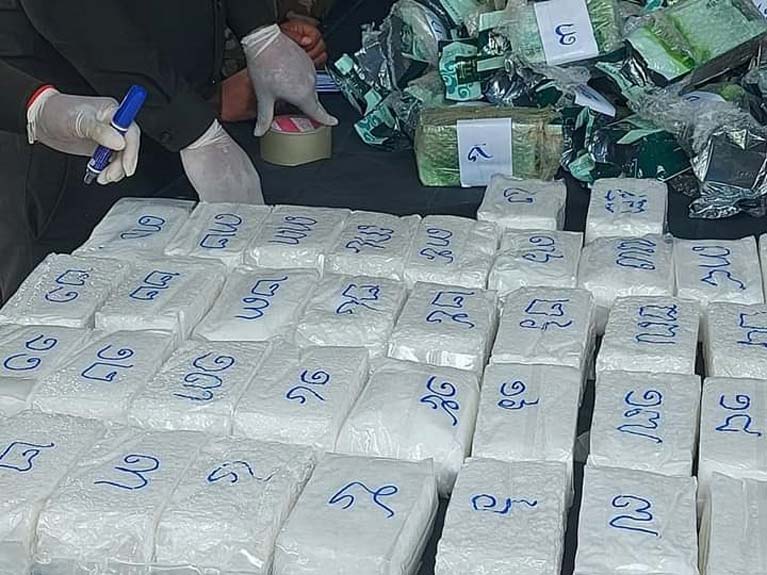 ភ្លាមៗនោះ កងកម្លាំង ក៏បានធ្វើការឆែកឆេរ ស្រាប់តែបានឃើញ ករណីមួយគួរឱ្យភ្ញាក់ផ្អើល នៅក្នុងការ៉ុងនោះ គេបានឃើញ ម្សៅក្រាមថ្លាពណ៌ស ចំនួន ៤២កញ្ចប់ ដែលគេសង្ស័យថា គឺជាគ្រឿងញៀន ដែលក្រុមឈ្មួញ ធ្វើការរត់ពន្ធឆ្លងដែន មកពីប្រទេសឡាវ ចូលមកប្រទេសកម្ពុជាយើងនេះ។