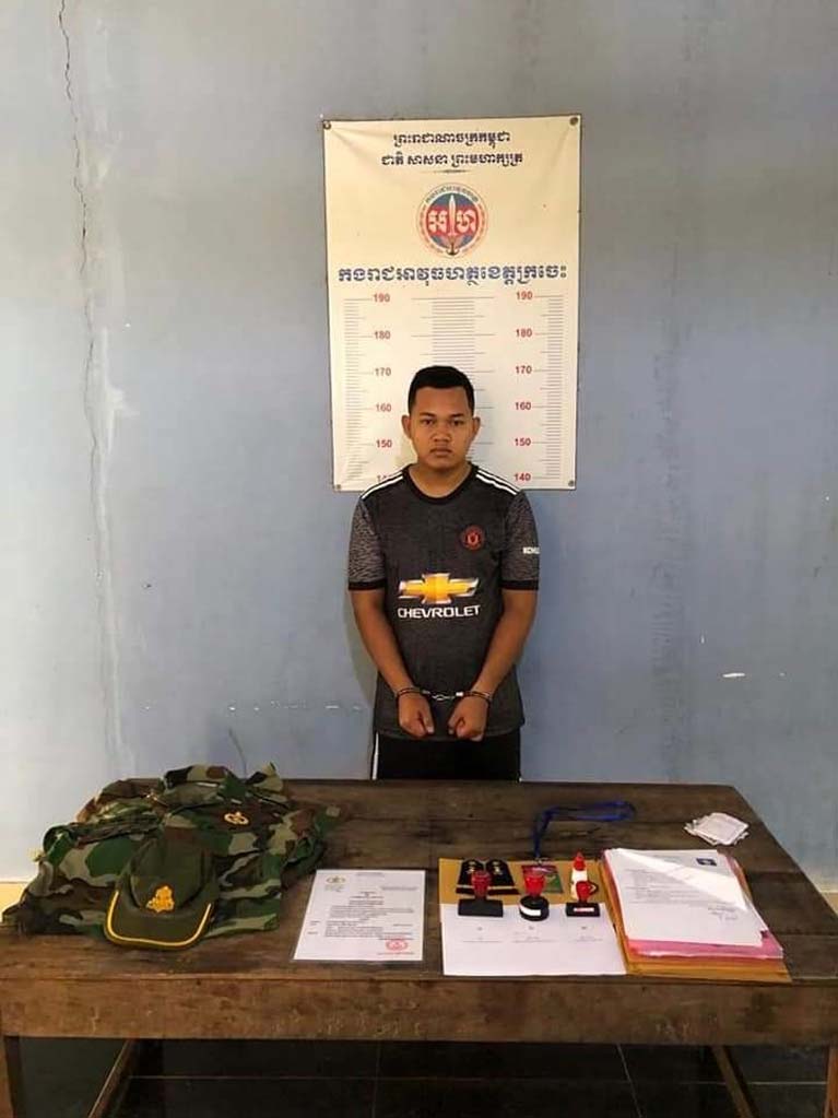 (ក្រចេះ)÷ សមត្ថកិច្ចកងរាជអាវុធហត្ថខេត្តក្រចេះបានសម្រេចចាប់ឃាត់ខ្លួនមនុស្សប្រុសស្រីចំនួន៣នាក់រួមទាំងរថយន្តសេរីទំនើបមួយគ្រឿងទៅកាន់សាលាតំបូងខេត្តក្រចេះ នៅរសៀលថ្ងៃទី១៣ ខែវិច្ឆការ ឆ្នាំ២០២០នេះ ដោយសង្យ័យ ជាប់ពាក់ពន្ធ័ករណីឆបោក (ជ្រើសរើសទ័ព) និងក្លែងឯកសារសាធារណះ
