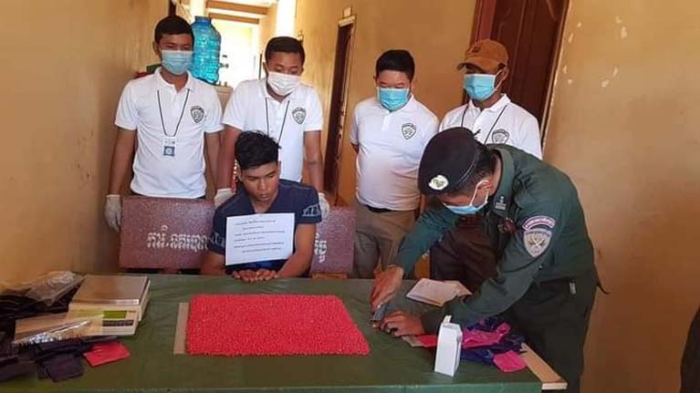 ខេត្តស្ទឹងត្រែង ៖ ថ្នាំញៀនដែលមានអក្សរ(A)នៅលើកញ្ចប់ មានចំនួន១០សុងស្មើនិង១០០កញ្ចប់តូច ប្រមាណ២ ម៉ឺនគ្រាប់រួមជាជនសង្ស័យម្នាក់ត្រូវបានកម្លាំងការិយាល័យប្រឆាំងគ្រឿងញៀនខេត្តចាប់ខ្លួននៅជាប់ព្រំដែនឡាវ។
