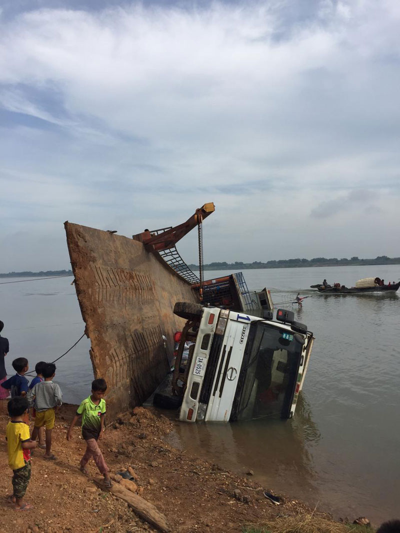 ប្រភពដដែលបន្តថា ករណីនេះបណ្តាលមកពីរថយន្តម៉ាក HINO ចំនួន ២គ្រឿង ដែលម្ចាស់រថយន្តមានឈ្មោះ សេង គឹមចាំង ដឹកដីពេញឡានបើកឡើងលើសាឡាង បម្រុងឆ្លងពីកំពង់ដរ ពង្រ ឆ្ពោះទៅកោះតាស៊ុយ ក៏រអិលកង់មកខាងឆ្វេងទាំងពីបណ្តាលអោយក្រឡាប់តែម្តង រួមជាមួយម៉ូតូ ១គ្រឿង ម៉ាកវេវអាលហ្វា (ជារបស់អ្នកបើកទូកដរ) ករណីនេះមិនបណ្តាលអោយមានគ្រោះថ្នាក់ដល់មនុស្សនៅឡើយ។