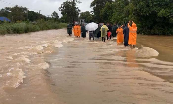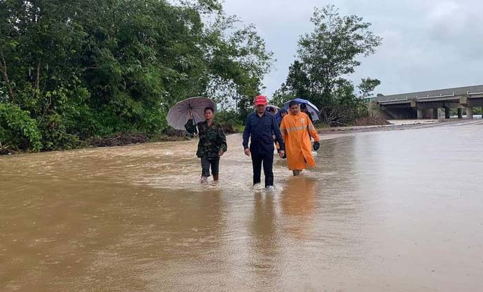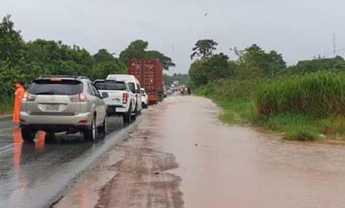 ឯកឧត្តមមានប្រសាសន៍បន្តទៀតថា ដោយសារតែកំណាត់ផ្លូវជាតិលេខ៤ ត្រង់ចំណុចស្ពានសំរោង ចន្លោះបង្គោលគីឡូម៉ែត្រលេខ ១១៥-១១៦ ស្ថិតនៅភូមិស្ទឹងច្រាល ឃុំអូរបាក់រទះ ស្រុកកំពង់សីលា ខេត្ព្រះសីហនុ ជាប់ព្រំប្រទល់ ភូមិទី៦ ឃុំយាយម៉ៅ ពេជ្រនិល ស្រុកភ្នំស្រួច ខេត្ដកំពង់ស្ពឺ ប្រឈមនឹទឹកជំនន់ទឹកភ្លៀងហូរកាត់កំណាត់ផ្លូវជាតិខាងលើ ដូច្នេះការធ្វើដំណើរឆ្លងកាត់ចំណុចនេះ ត្រូវបានបិទចរាចរណ៍ ជាបណ្ដោះ អាសន្ន សូមបងប្អូន ប្រជាពលរដ្ឋ មេត្ដាជ្រាប និងបង្វៀងទិសដៅទៅកាន់ផ្លូវជាតិលេខ៣ ជាបណ្ដោះអាសន្ន រង់ចាំទឹកស្រកដូចស្ថានភាពដើម ៕