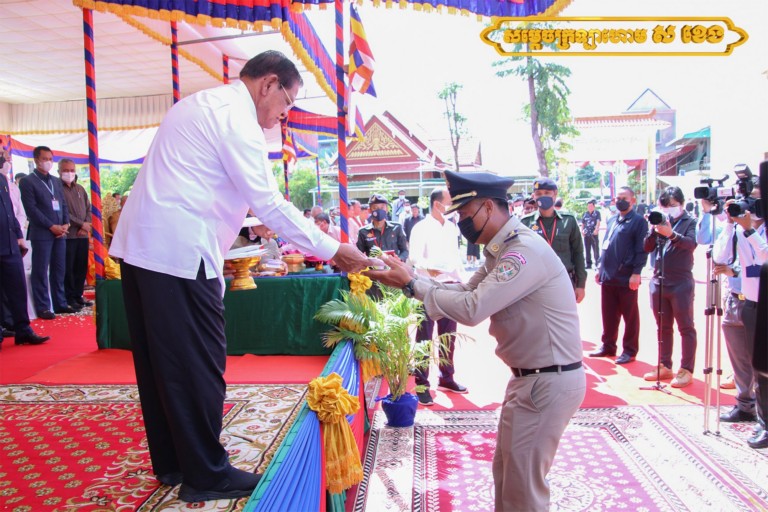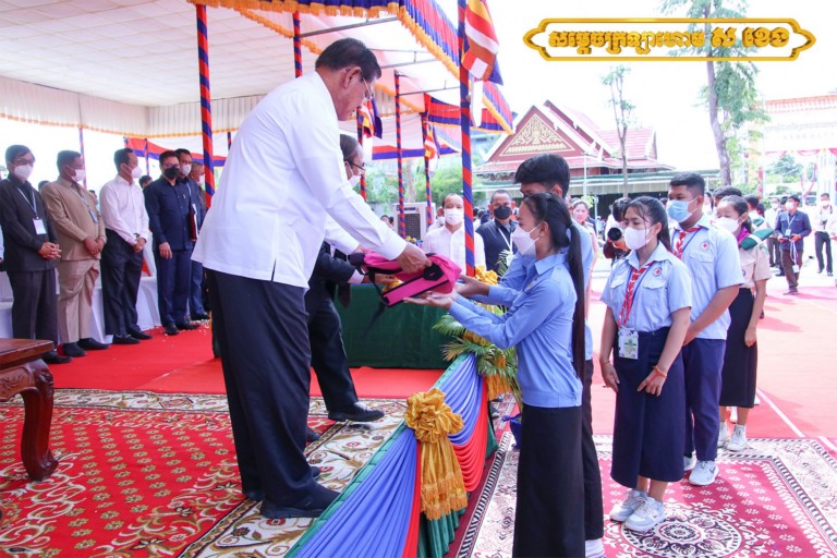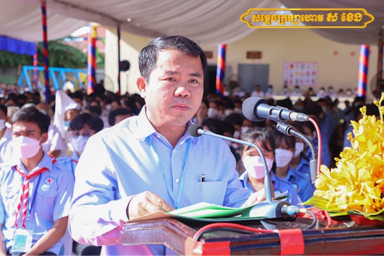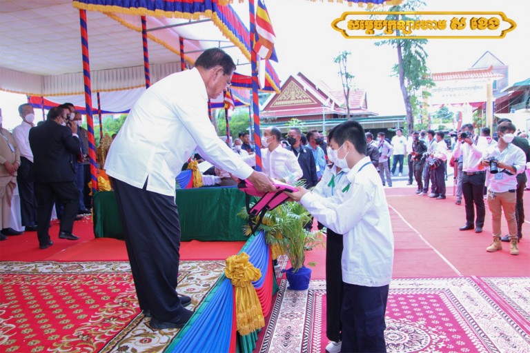 អញ្ជើញមានប្រសាសន៍នាឱកាសនោះ សម្ដេចក្រឡាហោម ស ខេង ឧបនាយករដ្ឋមន្ត្រី ក្នុងនាមសម្ដេចតេជោ ហ៊ុន សែន នាយករដ្ឋមន្ត្រី និងរាជរដ្ឋាភិបាលកម្ពុជា បានថ្លែងអំណរគុណ និងកោតសរសើរចំពោះលោកឧកញ៉ា តែ អ៊ីឆែ និងភរិយា ព្រមទាំងក្រុមគ្រួសារ និងសប្បុរសជនទាំងអស់ដែលបានចូលរួមសាមគ្គីបរិច្ចាកថវិកាគាំទ្រដំណើរការកសាងអគារសិក្សា ដែលជាផ្នែកមួយដ៏មានសារៈសំខាន់នៅក្នុងដំណើរការបណ្ដុះបណ្ដាល និងកសាងធនធានមនុស្សនៅកម្ពុជា។