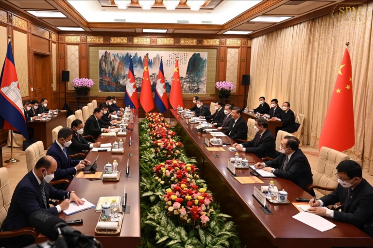 មេដឹកនាំទាំងពីរ នឹងបន្តពង្រឹងស្មារតីកសាងសហគមន៍តែមួយ ជោគវាសនាតែមួយ ដែលផ្តោតសំខាន់លើវិស័យចំនួន៦ រួមមានទី១)នយោបាយ និងការទូត ២)វិស័យសមត្ថភាពផលិត និងវាយភណ្ឌ ៣)កសិកម្ម ៤)ថាមពល ៥)សន្តិសុខ ៦)ទំនាក់ទំនងរវាងប្រជាជន និងប្រជាជន រួមទាំងការលើកកម្ពស់វិស័យសុខាភិបាលនៅកម្ពុជា។ នៅក្នុងជំនួបគ្នានេះ ឯកឧត្តម ស៊ី ជីនពីង បានគាំទ្រចំពោះជំហគោលនយោបាយរបស់កម្ពុជា ចំពោះភាពឯករាជ្យ បូរណភាពទឹកដី របស់កម្ពុជា។ ទាក់ទិននឹងការលើកឡើងរបស់ ឯកឧត្តមប្រធានាធិបតីចិន សម្តេចតេជោបានឆ្លើយតបថា ជំនួយឧបត្ថម្ភរបស់ចិន គឺមិនគ្រាន់តែចូលរួមចំណែកដល់ភាពរីកចំរើនរបស់កម្ពុជាប៉ុណ្ណោះទេ តែបានរួមចំណែកដល់ការពង្រឹងឯករាជ្យភាពរបស់កម្ពុជា ខ្ពស់មុខខ្ពស់មាត់លើឆាកអន្តរជាតិ។ ភាគីទាំងពីរបានវាយតម្លៃខ្ពស់ ចំពោះការចូលជាធរមាននៃកិច្ចព្រមព្រៀងពាណិជ្ជកម្មសេរីកម្ពុជា-ចិន ដែលបានចូលជាធរមានកាលពីថ្ងៃទី១ ខែមករាឆ្នាំ២០២២ដែលបានជំរុញការបើក ទីផ្សាររបស់ចិន ទទួលកសិផលនិងមច្ឆាជាតិរបស់កម្ពុជា។ ឯកឧត្តមប្រធានាធិបតីមានប្រសាសន៍ចាប់អារម្មណ៍ពីការអភិវឌ្ឍកសិកម្ម និងវារីវប្បធម៌នៅតំបន់ជុំវិញបេឹងទន្លេសាប។