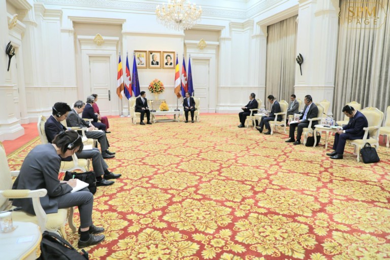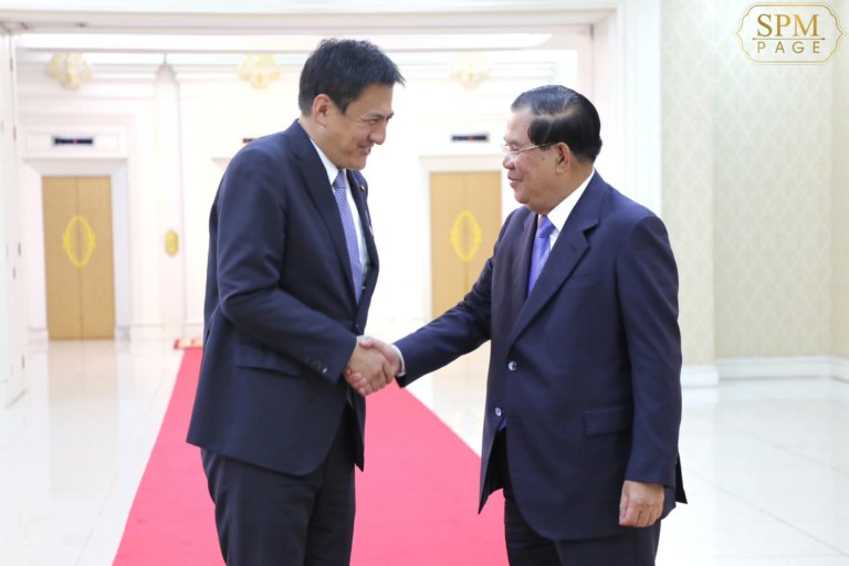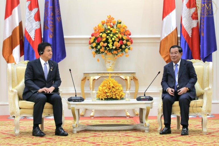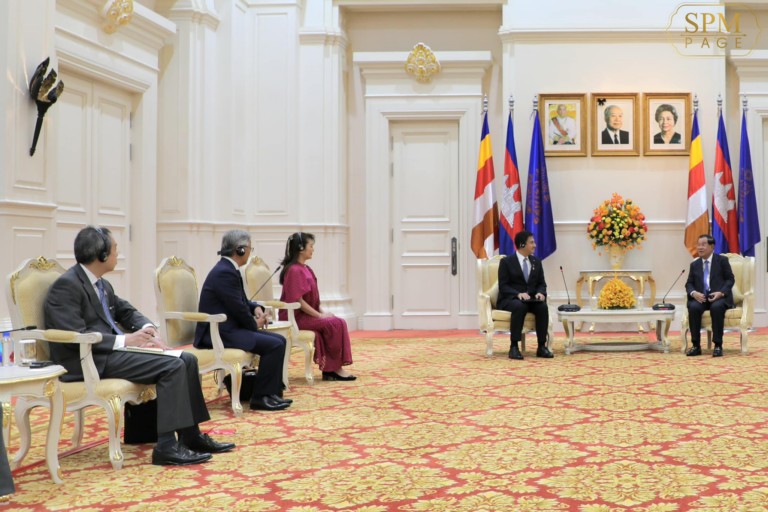 នៅវិមានសន្តិភាព នាព្រឹកថ្ងៃព្រហស្បតិ៍ ទី២៣ ខែកុម្ភៈ ឆ្នាំ២០២៣នេះ សម្តេចអគ្គមហាសេនាបតីតេជោ ហ៊ុន សែន នាយករដ្ឋមន្ត្រីនៃព្រះរាជាណាចក្រកម្ពុជា អនុញ្ញាតឱ្យឯកឧត្តម តាកេ ហ្ស៊ឺនសឹកិ (TAKEI Shunsuke) រដ្ឋលេខាធិការក្រសួងការបរទេសជប៉ុន និងលោកស្រី មិណាមិណុ យ៉ូកុ (Minamino Yoko) តារាចម្រៀងរបស់ជប៉ុន ចូលជួបសម្តែងការគួរសម និងពិភាក្សាលើការងារមួយចំនួន។
