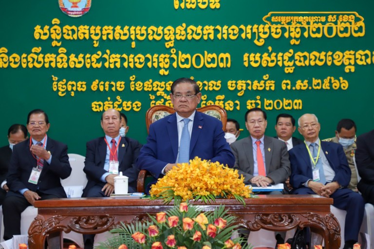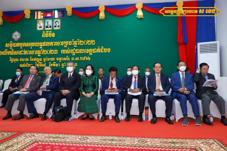 នាព្រឹកថ្ងៃពុធ ៩រោច ខែផល្គុន ឆ្នាំខាល ចត្វាស័ក ព.ស.២៥៦៦ ត្រូវនឹងថ្ងៃទី១៥ ខែមីនា ឆ្នាំ២០២៣ សម្ដេចក្រឡាហោម ស ខេង ឧបនាយករដ្ឋមន្ត្រី រដ្ឋមន្ត្រីក្រសួងមហាផ្ទៃ អញ្ជើញជាអធិបតីក្នុងពិធីបិទសន្និបាតបូកសរុបលទ្ធផលការងារប្រចាំឆ្នាំ២០២២ និងលើកទិសដៅការងារឆ្នាំ២០២៣ របស់រដ្ឋបាលខេត្តបាត់ដំបង ប្រារព្ធនៅសាលាខេត្តបាត់ដំបង។