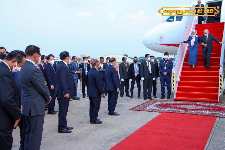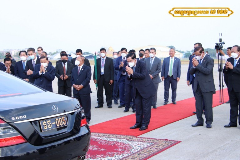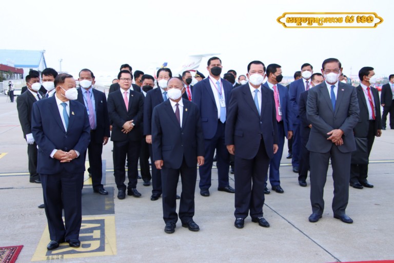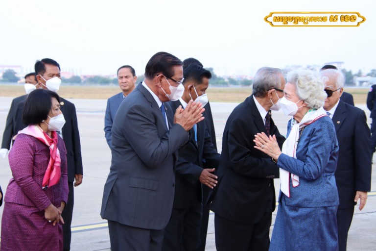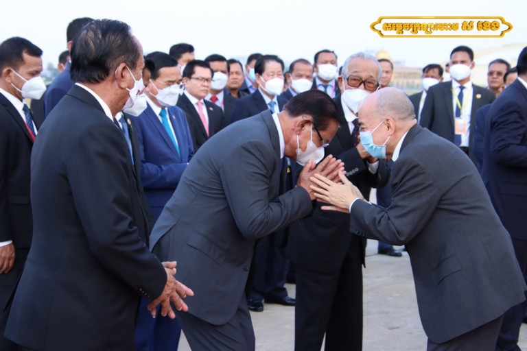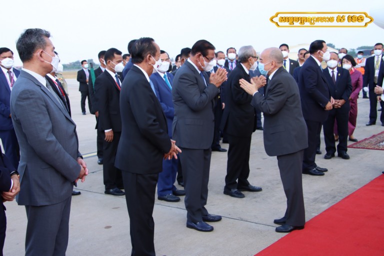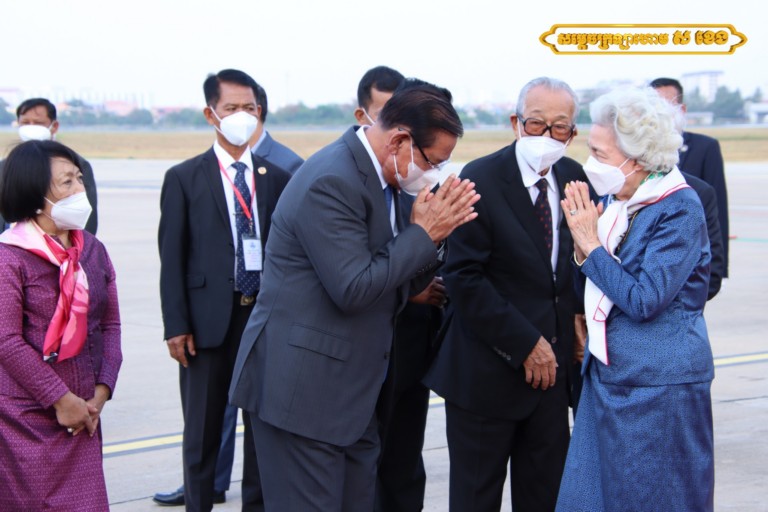 អញ្ជើញថ្វាយព្រះរាជដំណើរព្រះករុណាជាអម្ចាស់ជីវិតលើត្បូង និងសម្ដេចព្រះវររាជមាតាជាតិខ្មែរ នៅអាកាសយានដ្ឋានអន្តរជាតិភ្នំពេញនាឱកាសនោះ រួមមាន សម្ដេចវិបុលសេនាភក្ដី សាយ ឈុំ ប្រធានព្រឹទ្ធសភា, សម្ដេចអគ្គមហាពញាចក្រី ហេង សំរិន ប្រធានរដ្ឋសភា, សម្ដេចអគ្គមហាសេនាបតីតេជោ ហ៊ុន សែន នាយកដ្ឋមន្ត្រី នៃព្រះរាជាណាចកម្ពុជា, ព្រះញាតិវង្សានុវង្ស ថ្នាក់ដឹកនាំក្រសួងព្រះបរមរាជវាំង ឯកអគ្គរដ្ឋទូតសាធារណរដ្ឋប្រជាមានិតចិន និងឥស្សរជនថ្នាក់ដឹកនាំជាតិសំខាន់ៗមួយចំនួនទៀត។