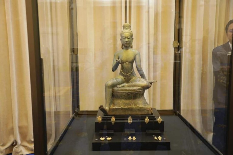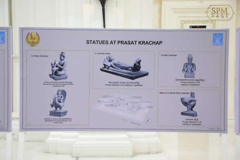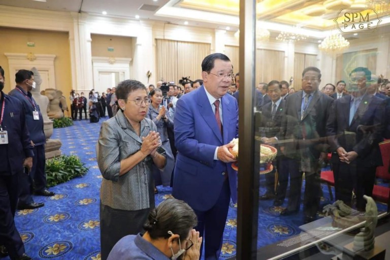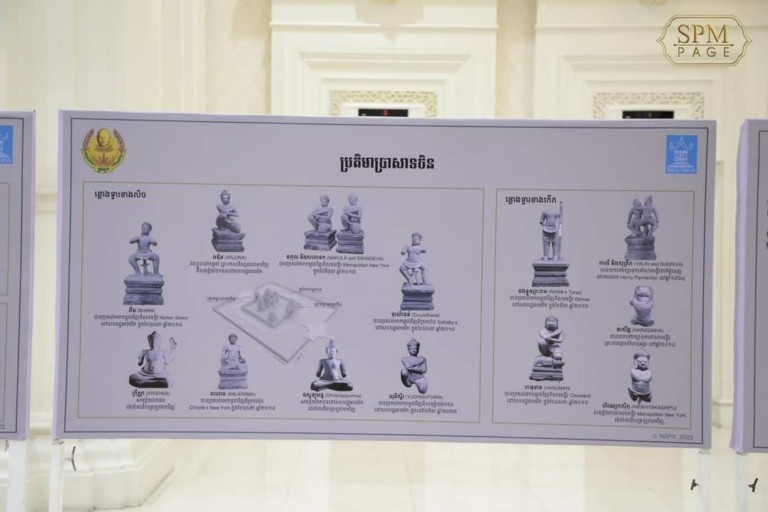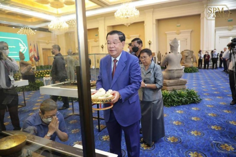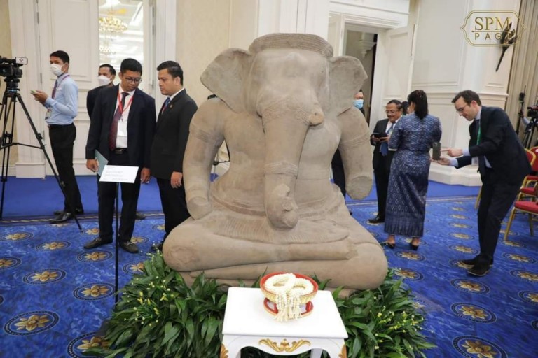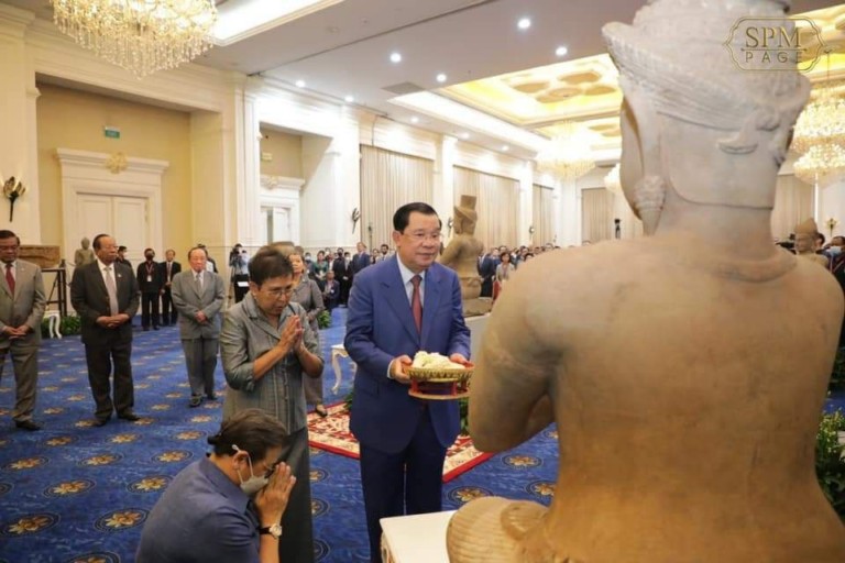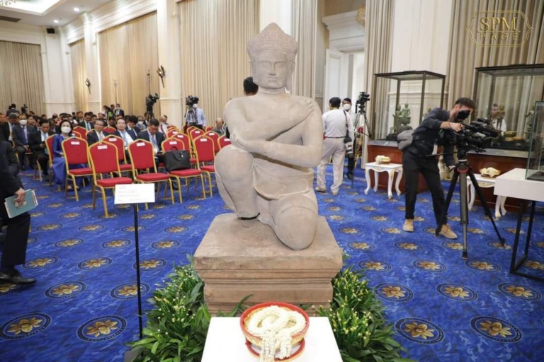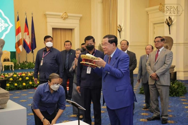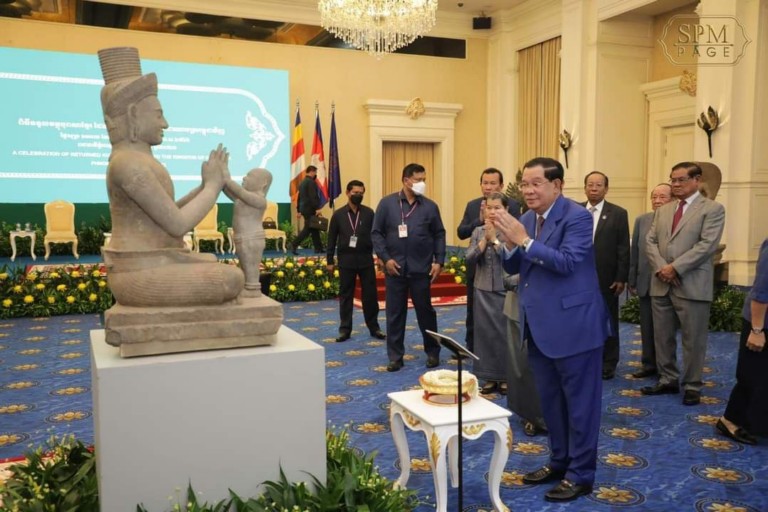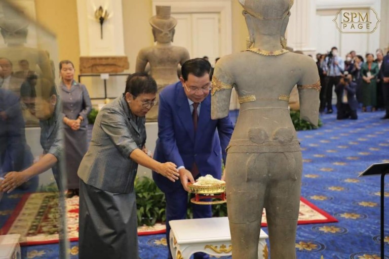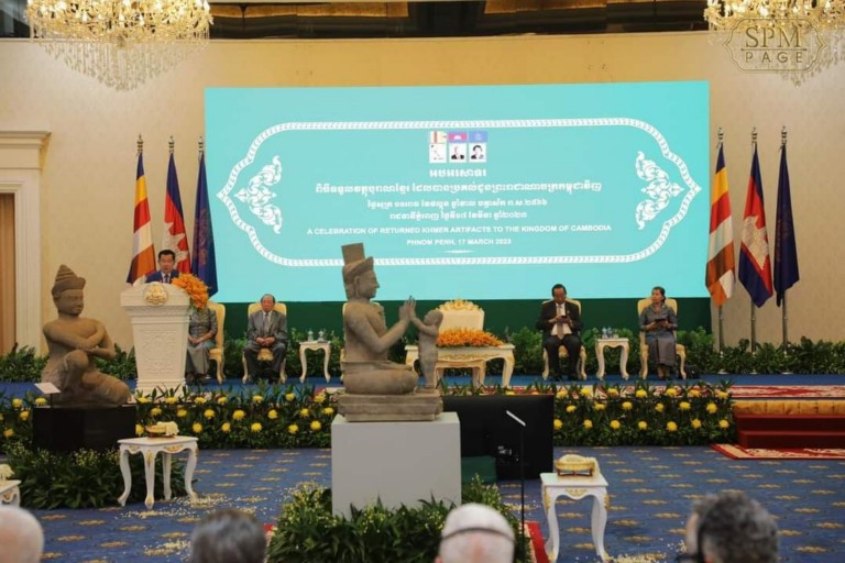 នៅព្រឹក ថ្ងៃសុក្រ ១១រោច ខែផល្គុន ឆ្នាំខាល ចត្វាស័ក ព.ស. ២៥៦៦ ត្រូវនឹង ថ្ងៃទី១៧ ខែមីនា ឆ្នាំ២០២៣ នេះ សម្ដេចអគ្គមហាសេនាបតីតេជោ ហ៊ុន សែន នាយករដ្ឋមន្ត្រី នៃព្រះរាជាណាចក្រកម្ពុជា បានអញ្ជើញជាអធិបតីភាពដ៏ខ្ពង់ខ្ពស់នៅក្នុងពិធីទទួលវត្ថុបុរាណខ្មែរដែលបានប្រគល់ជូនព្រះរាជាណាចក្រកម្ពុជាវិញ។ ពិធីនេះបានប្រព្រឹត្តទៅនៅវិមានសន្តិភាព នៃទីស្ដីការនាយករដ្ឋមន្ត្រី។