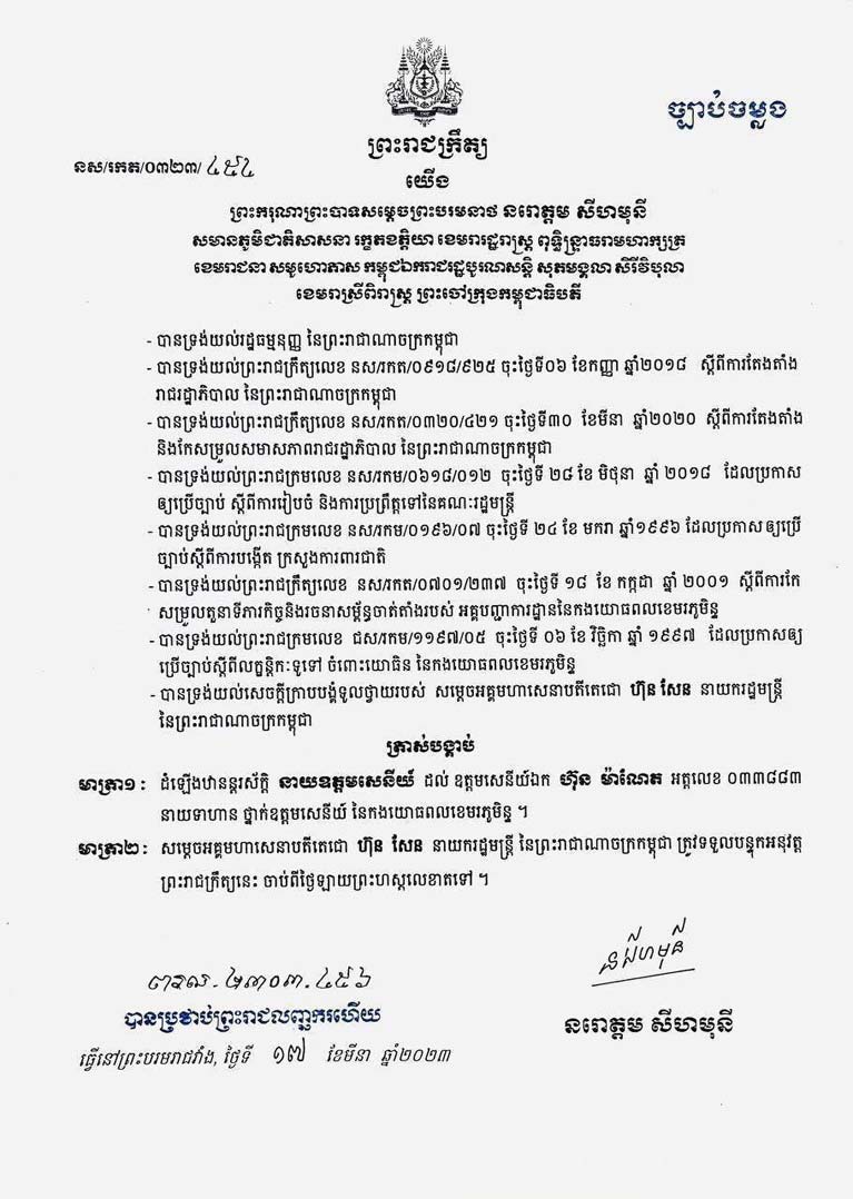 (ភ្នំពេញ)៖ ឯកឧត្តមបណ្ឌិត ហ៊ុន ម៉ាណែត អគ្គមេបញ្ជាការរង និងជាមេបញ្ជាការកងទ័ពជើងគោក ដែលត្រូវបាន ព្រះមហាក្សត្រនៃព្រះរាជាណាចក្រកម្ពុជា សព្វព្រះរាជហឫទ័យដំឡើងឋានន្តរស័ក្តិជា «នាយឧត្តមសេនីយ៍» នេះបើយោងតាមព្រះរាជក្រឹត្យ នស រកត ០៣២៣ ៤៥៤ ចុះថ្ងៃទី ១៧ ខែមីនា ឆ្នាំ ២០២៣ ។