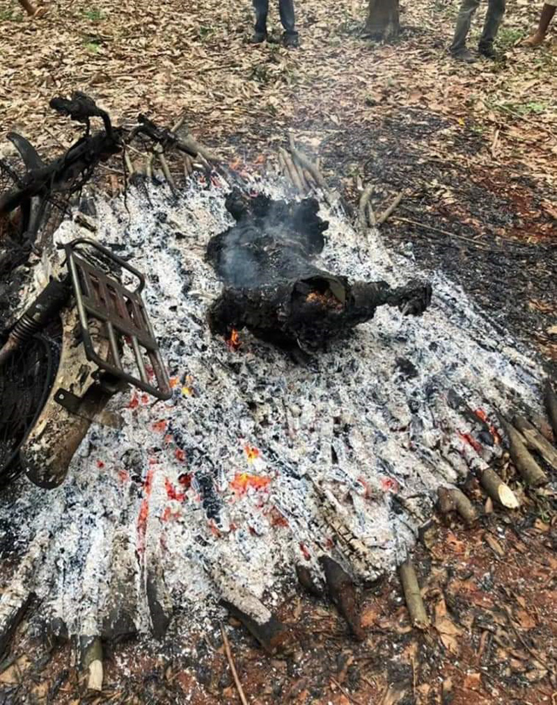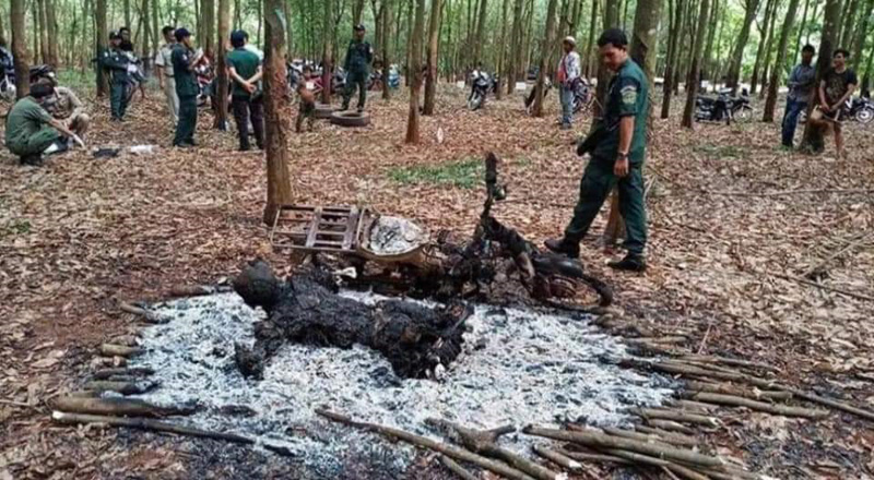 ក្រចេះ ៖ ប្រទះឃើញសាកសពឆេះខ្លោច នៅថ្ងៃទី២៦ ខែមិថុនា ឆ្នាំ២០១៩ វេលាម៉ោង ១២និង០០នាទីថ្ងៃត្រង់ មានប្រជាពលរដ្ឋរាយការណ៍មកថា ត្រង់ចំណុចផ្លូវកាំភ្លើងធំ ក្នុងឡូតិ៍ចម្ការកៅស៊ូក្រុមហ៊ុនស្នួល ភូមិដូនប៉ុក ឃុំស្រែចារ ស្រុកស្នួល ខេត្តក្រចេះ ប្រទះឃើញមនុស្សដេកឆេះស្លាប់ក្នុងភ្នក់ភ្លើង ក្បែរម៉ូតូមួយគ្រឿង ក្នុងដីឡូតិ៍កៅស៊ូចម្ងាយពីផ្លូវលំប្រមាណជា ១០០ម៉ែត្រ។