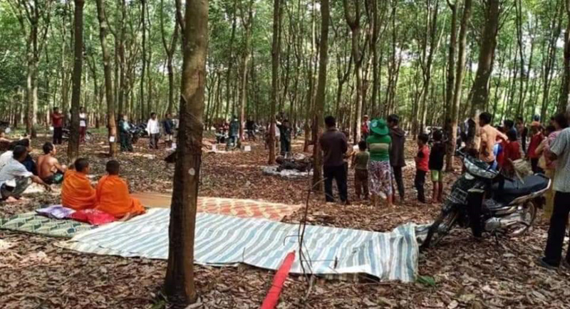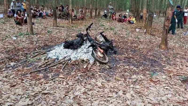 យោងតាមការបំភ្លឺពីជីដូនរបស់សាកសព បានឆ្លើយបំភ្លឺថា មុនពេលកើតហេតុវេលាម៉ោងប្រហែល ១០និង០០នាទីព្រឹក ជនរងគ្រោះបានសុំលុយចំនួន ២០០០រៀល (ពីរពាន់រៀល) ដើម្បីទៅកាប់អុសក្នុងចម្ការកៅស៊ូ បន្ទាប់មកក៏ជិះម៉ូតូម៉ាក សង់ការ៉េ ពណ៌ក្រហម គ្មានស្លាកលេខ (ម៉ូតូចាស់) និងកាំបិតផ្គាក់ ចំនួន១ ជិះចេញមកតែម្នាក់ឯង។ លុះដល់វេលាម៉ោង ១២និង០០នាទី មានកម្មករជៀរជ័រកៅស៊ូ ប្រទះឃើញមានសាកសព មិនស្គាល់អត្តសញ្ញាណ ឆេះស្លាប់ នៅក្បែរម៉ូតូឆេះខ្លោចមើលមិនស្គាល់ រួចរាយការណ៍ជូនសមត្ថកិច្ចភ្លាម ទទួលបានដំណឹងនេះហើយ កម្លាំងសមត្ថកិច្ចបានចុះទៅដល់ កន្លែងកើតហេតុ ធ្វើការហ៊ុមព័ទ្ធ និងស្រាវជ្រាវរកសាច់ញាតិ អត្តសញ្ញាណសព ។