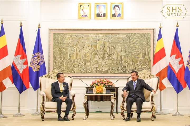 នៅវិមាន៧មករា រាជធានីភ្នំពេញ នារសៀលថ្ងៃទី១ធ្នូ ឆ្នាំ២០២៣ សម្តេចអគ្គមហាសេនាបតីតេជោ ហ៊ុន សែន ប្រធានក្រុមឧត្តមប្រឹក្សាផ្ទាល់ព្រះមហាក្សត្រ នៃព្រះរាជាណាចក្រកម្ពុជា និងជាប្រធានគណបក្សប្រជាជនកម្ពុជា បានអនុញាតិឱ្យឯកឧត្តម សុធីន ខ្លាំងសែង រដ្ឋមន្ត្រីក្រសួងការពារជាតិ នៃព្រះរាជាណាចក្រថៃ និងគណៈប្រតិភូ ចូលជួបសម្ដែងការគួរសម និងពិភាក្សាការងារ ក្នុងឱកាសដែលគណៈប្រតិភូ បំពេញទស្សនកិច្ចនៅព្រះរាជាណាចក្រកម្ពុជា។