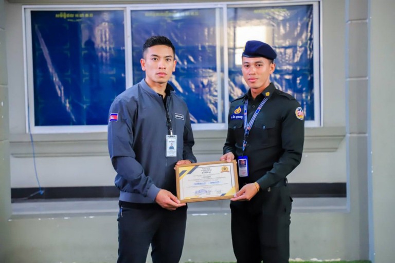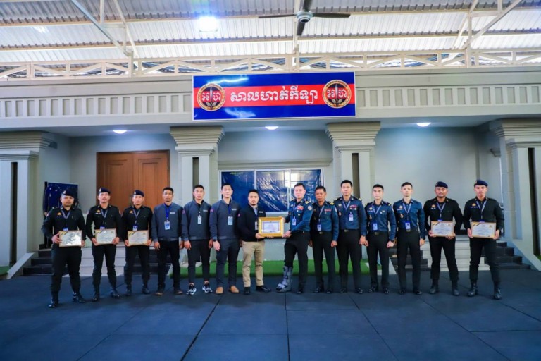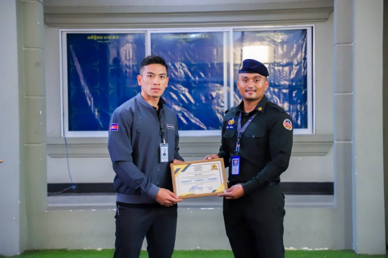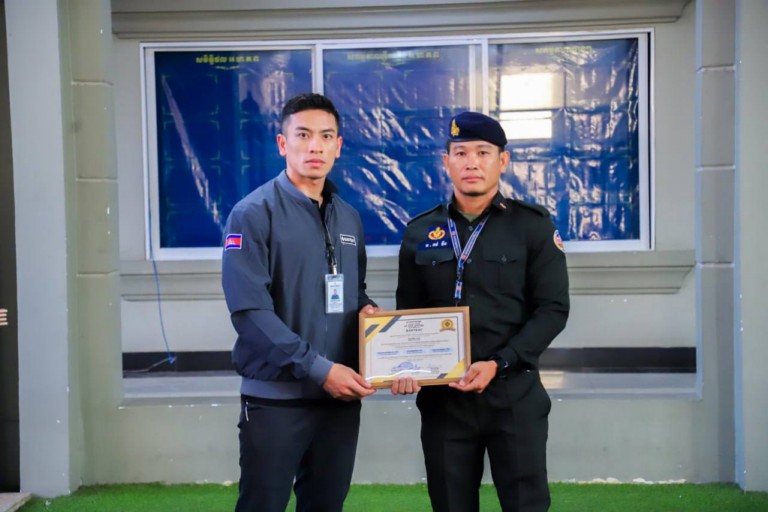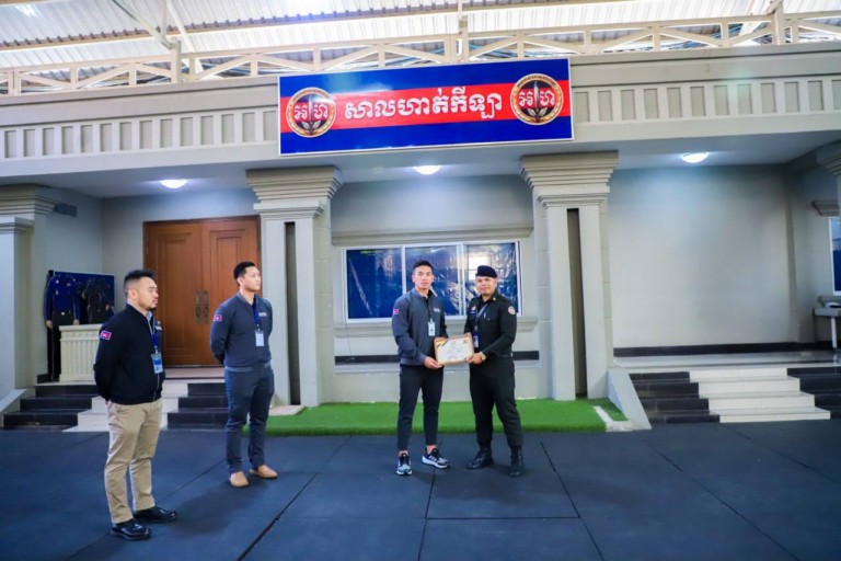 ក្នុងឱកាសនោះផងដែរ លោកវរសេនីយ៍ឯក សៀ ទីន នាយសេនាធិការ កងរាជអាវុធហត្ថរាជធានីភ្នំពេញ តំណាង លោកឧត្តមសេនីយ៍ឯក រ័ត្ន ស្រ៊ាង មេបញ្ជាការរង កងរាជអាវុធហត្ថលើផ្ទៃប្រទេស ជាមេបញ្ជាការ កងរាជអាវុធហត្ថរាជធានីភ្នំពេញ បានប្រគល់ប័ណ្ណថ្លែងអំណរគុណដល់មជ្ឈមណ្ឌលកីឡា Banteay ដែលបានប្រឹងប្រែងបណ្ដុះបណ្ដាលក្រុមគ្រូបង្គោលរបស់អង្គភាពអាវុធហត្ថរាជធានីភ្នំពេញ នាពេលកន្លងមក៕