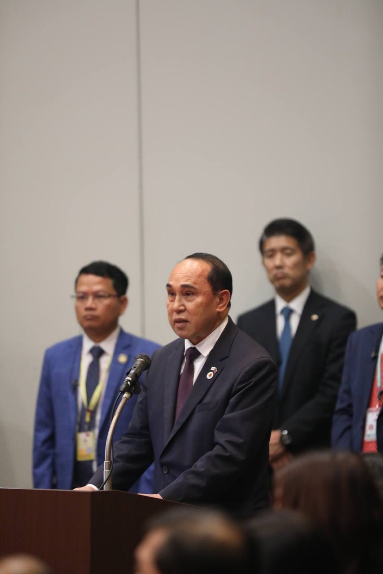 សម្តេចធិបតី ហ៊ុន ម៉ាណែត បានថ្លែងថា សម្រាប់ខ្មែរយើងមិនថានៅអាមេរិក ឬប្រទេសណាទេ យើងគួរតែអបអរសាទរដល់ សន្តិភាពរបស់យើងដែលកំពុងមាននៅពេលនេះ។ មកដល់ឆ្នាំនេះ មានរយៈពេល៧០ឆ្នាំហើយ សម្រាប់ទំនាក់ទំនងកម្ពុជា-ជប៉ុន ប៉ុន្តែឆ្នាំនេះ ជាកម្រិតខ្ពស់បំផុត ដែលប្រទេសទាំងពីរបានក្លាយទៅជាដៃគូយុទ្ធសាស្ត្រគ្រប់ជ្រុងជ្រោយ។ សម្តេចធិបតីបានថ្លែងថា ថ្ងៃទី២២ ខែធ្នូ ខាងមុខនេះ សម្តេចនឹងសម្ពោធផែទឹកជ្រៅ នៅខេត្តព្រះសីហនុ។ ទស្សនកិច្ចសម្តេចនៅក្រៅប្រទេស ចំណុចសំខាន់ជាងគេខាងសេដ្ឋកិច្ច គឺដើរទាក់ម៉ូយ គឺផ្សព្វផ្សាយពីកម្ពុជា យើងមានផលិតផលត្រូវតែដើរផ្សព្វផ្សាយប្រាប់គេឱ្យដឹង។