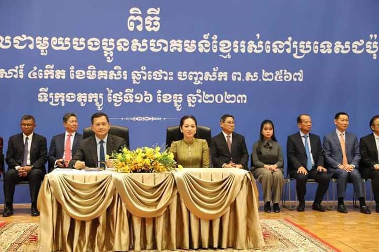 ពេជ ចន្ទមុន្នី ហ៊ុនម៉ាណែត បានអញ្ជើញជួបសំណេះសំណាល ជាមួយបងប្អូនប្រជាពលរដ្ឋខ្មែរ នៅប្រទេសជប៉ុន ឱកាសដែលសម្តេចអញ្ជើញចូលរួមក្នុងកិច្ចប្រជុំកំពូលជប៉ុន-អាស៊ាន។