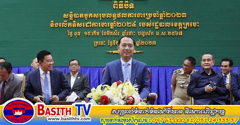 រសៀលថ្ងៃពុធ ១៥កើត ខែមិគសិរ ឆ្នាំថោះ បញ្ចស័ក ព.ស.២៥៦៧ ត្រូវនឹងថ្ងៃទី២៧ ខែធ្នូ ឆ្នាំ២០២៣នេះ ឯកឧត្តម ហឿ ស៊ីយ៉ែម ប្រធានក្រុមប្រឹក្សាខេត្ត និងឯកឧត្តម វ៉ា ថន អភិបាលខេត្ត អញ្ជើញចូលរួមក្នុងពិធីបិទសន្និបាតបូកសរុបលទ្ធផលការងារប្រចាំឆ្នាំ២០២៣ និងលើកទិសដៅការងារឆ្នាំ២០២៤ របស់រដ្ឋបាលខេត្តក្រចេះ ក្រោមអធិបតីភាព ឯកឧត្តម នេត្រ ភក្ត្រា រដ្ឋមន្ត្រីក្រសួងព័ត៌មាន និងជាប្រធានក្រុមការងាររាជរដ្ឋាភិបាលចុះជួយមូលដ្ឋានខេត្តក្រចេះ នៅសាលមហោស្រពខេត្ត ។