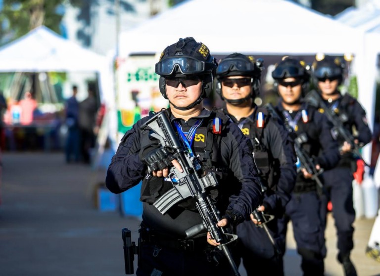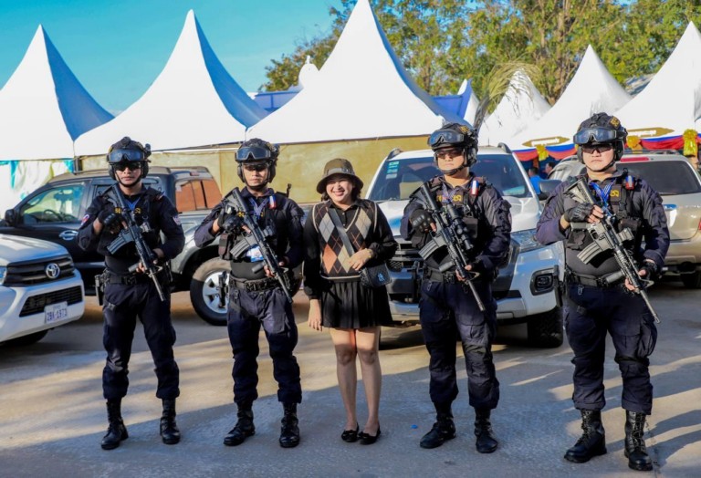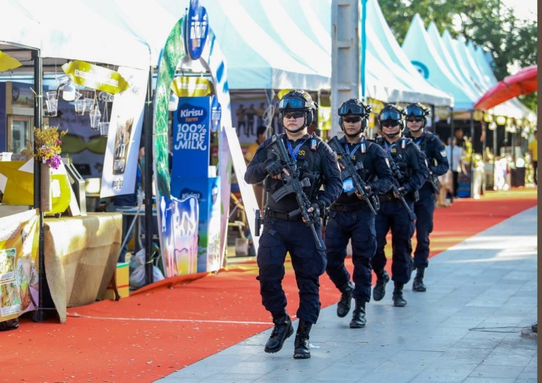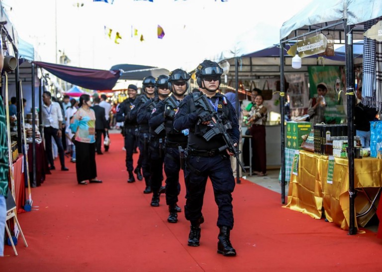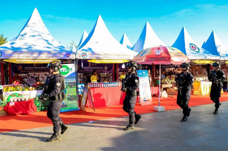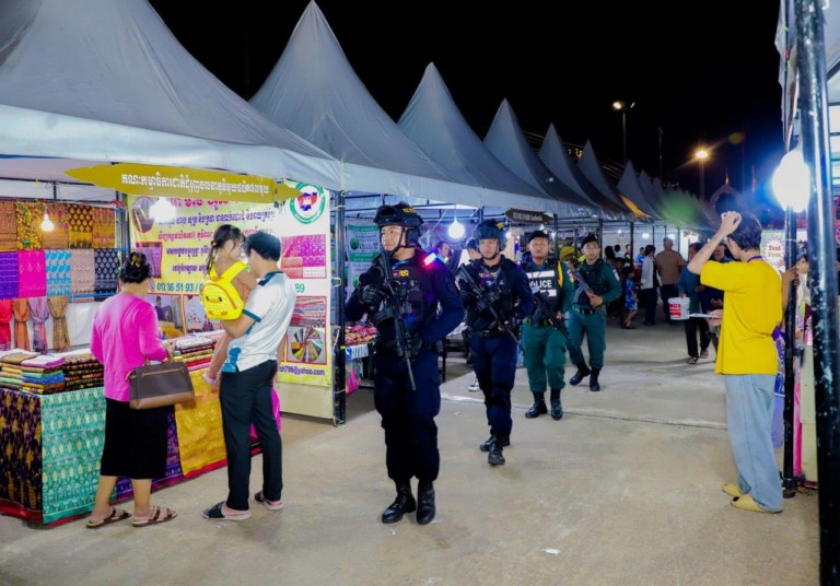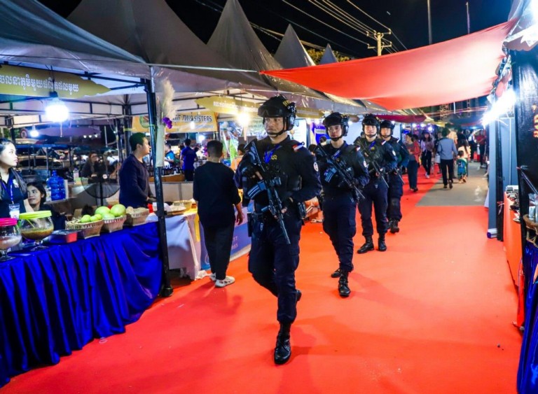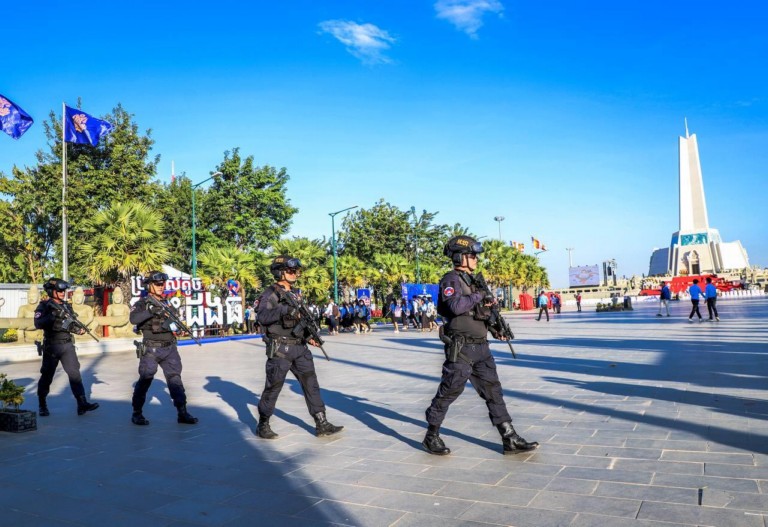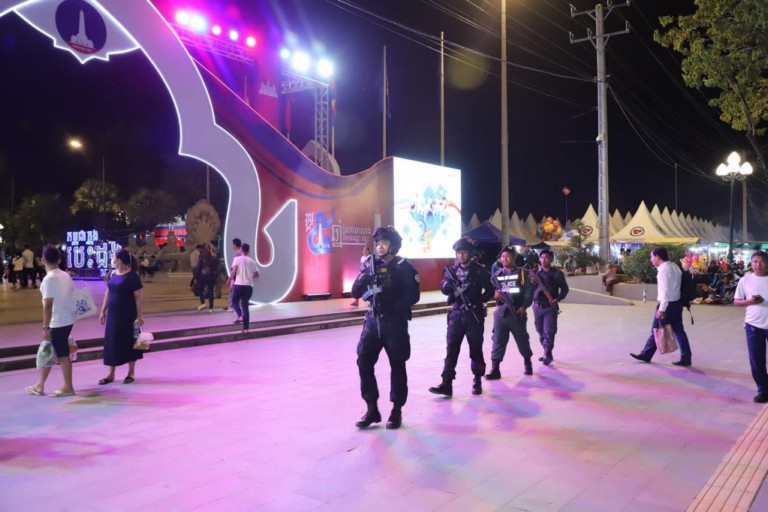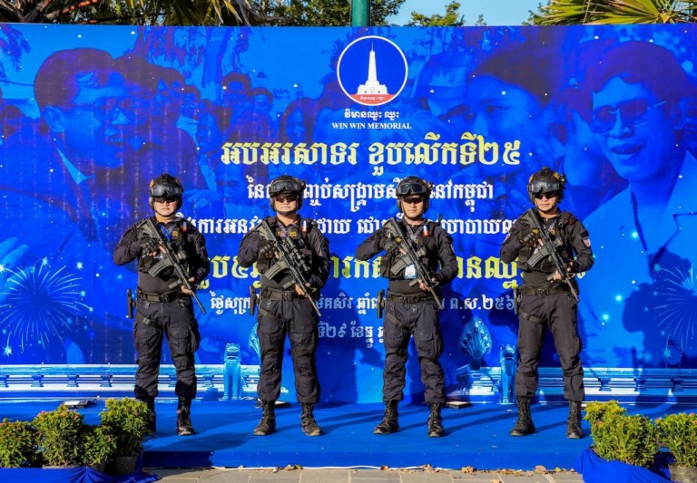 (ភ្នំពេញ)៖ កម្លាំងកងរាជអាវុធហត្ថរាជធានីភ្នំពេញ បានចូលរួមជាមួយសមត្ថកិច្ចចម្រុះ ការពារសន្តិសុខ សុវត្ថិភាព រក្សាសណ្តាប់ធ្នាប់ និងសង្គ្រោះបន្ទាន់ជូនបងប្អូនប្រជាពលរដ្ឋ ភ្ញៀវជាតិ អន្តរជាតិ ដែលបានមកចូលរួមកម្សាន្ដ ក្នុងពិធីអបអរសាទរ «ខួបលើកទី២៥ នៃការបញ្ចប់សង្គ្រាមស៊ីវិល នៅកម្ពុជា និងការអនុវត្តប្រកបដោយជោគជ័យ នយោបាយឈ្នះឈ្នះ និងខួប៥ឆ្នាំ នៃការកសាងវិមានឈ្នះឈ្នះ» នៅវិមានឈ្នះឈ្នះ ស្ថិតនៅខណ្ឌជ្រោយចង្វា រាជធានីភ្នំពេញ ថ្ងៃទី២៩ ខែធ្នូ ឆ្នាំ២០២៣៕
