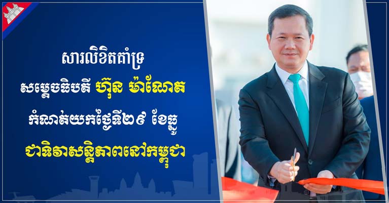 ការប្រកាសកំណត់យកថ្ងៃទី២៩ ខែធ្នូ ជា «ទិវាសន្តិភាពនៅកម្ពុជា» ជាគំនិតប្រកបដោយគតិបណ្ឌិតខ្ពង់ខ្ពស់បំផុត និងប្រកបដោយទស្សនវិស័យវែងឆ្ងាយរបស់សម្តេចបវរធិបតី ហ៊ុន ម៉ាណែត សម្រាប់ជាឧត្តមប្រយោជន៍របស់ជាតិមាតុភូមិ។ យើងខ្ញុំទាំងអស់គ្នាមានក្តីសោមនស្សរីករាយក្រៃលែង និងសូមប្រកាសគាំទ្រយ៉ាងពេញទំហឹងនូវប្រសាសន៍ដ៏ខ្ពង់ខ្ពស់របស់សម្តេចមហាបវរធិបតី ហ៊ុន ម៉ាណែត នាយករដ្ឋមន្ត្រីនៃព្រះរាជាណាចក្រកម្ពុជា៕