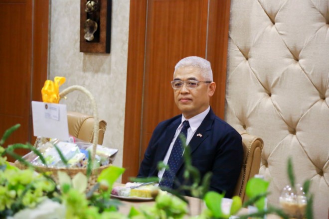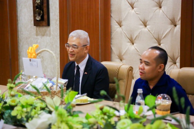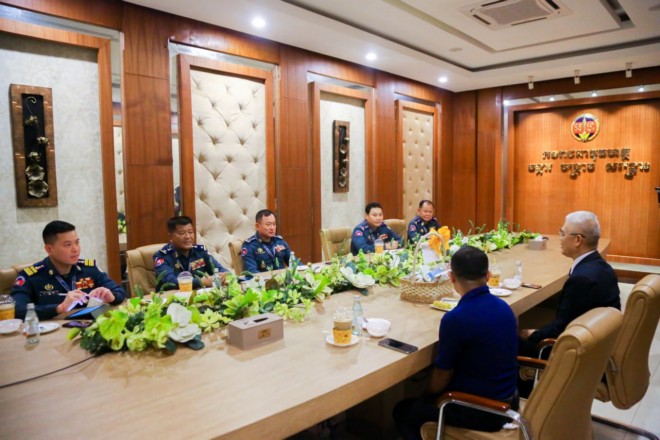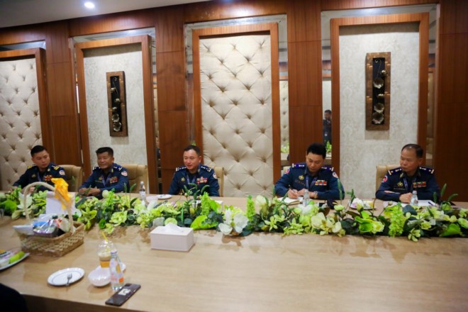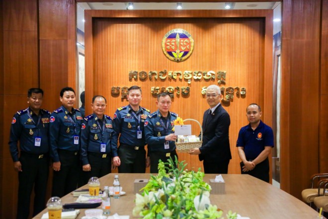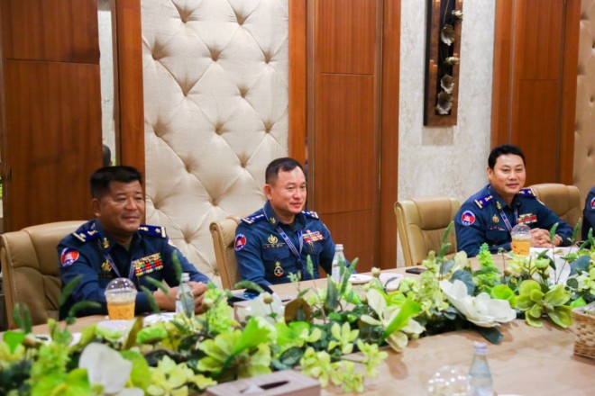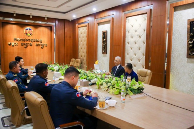 នៅថ្ងៃទី០៣ ខែមករា ឆ្នាំ២០២៤ លោកឧត្តមសេនីយ៍ឯក រ័ត្ន ស្រ៊ាង មេបញ្ជាការរង កងរាជអាវុធហត្ថលើផ្ទៃប្រទេស ជាមេបញ្ជាការ កងរាជអាវុធហត្ថរាជធានីភ្នំពេញ បានទទួលស្វាគមន៍ លោកវរសេនីយ៍ឯក បិយវឌ្ឍន៍ កៀតកង អនុព័ន្ធនគរបាលភូមិន្ទថៃ ប្រចាំស្ថានទូតថៃ ចូលមកជួបសំណេះសំណាល និងជូនពរ ក្នុងឱកាសចូលឆ្នាំថ្មី ឆ្នាំសកល ២០២៤ នៅបញ្ជាការដ្ឋាន កងរាជអាវុធហត្ថរាជធានីភ្នំពេញ ៕