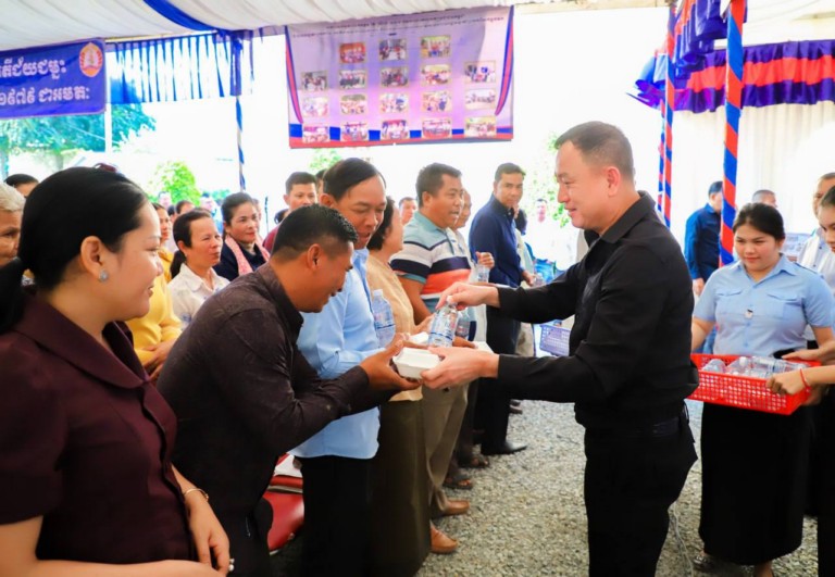 នៅក្នុងឱកាសនោះ ឯកឧត្តម រ័ត្ន ស្រ៊ាង ក៏បាននាំយកអាហារសម្រន់ និងទឹកសុទ្ធ ចូលរួមបរិភោគរួមគ្នាជាមួយ សមាជិក សមាជិកាទាំងអស់ ប្រកបដោយភាពស្និទ្ធស្នាល។ នៅចុងបញ្ចប់នៃកម្មវិធី ឯកឧត្តម រ័ត្ន ស្រ៊ាង បានប្រគល់កុំព្យូទ័រលើតុចំនួន ០៣គ្រឿងជូនដល់សាលាវិទ្យាល័យ សម្តេចតេជោ ហ៊ុន សែន ព្រែកកំពឹស ដើម្បីទុកបម្រើការងារក្នុងសាលា និងបានឧបត្ថម្ភថវិកាជូនដល់ក្រុមយុវជន និងកម្លាំងការពារសណ្តាប់ធ្នាប់ដែលបានចូលរួមក្នុងកម្មវិធីនាឱកាសនោះ ដោយម្នាក់ៗទទួលបានថវិកាចំនួន ២០,០០០រៀល ៕