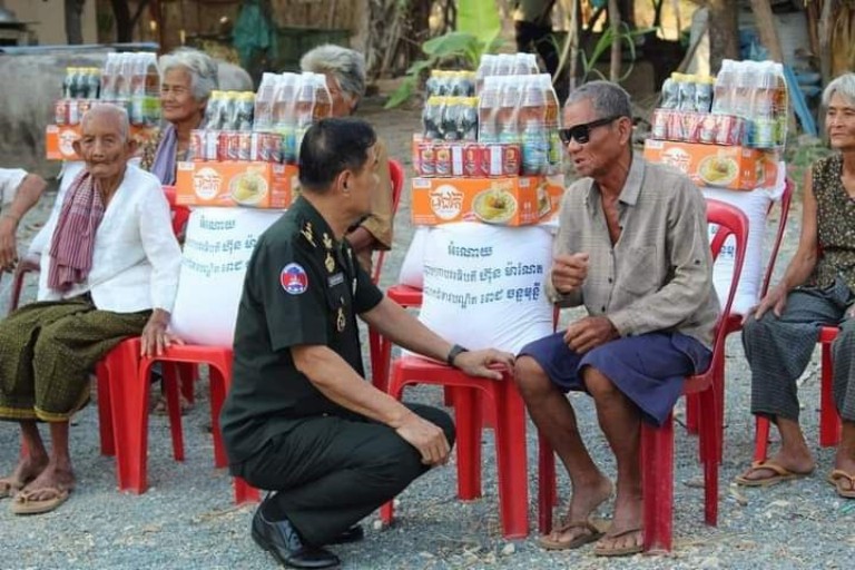 ស្ថិតក្នុងឱកាសនេះដែរ ឯកឧត្តម មេបញ្ជាការ បានពាំនាំ នូវប្រសាសន៍ផ្តាំផ្ញើសួរសុខទុក្ខពីសំណាក់ សម្តេចធិបតី នាយករដ្ឋមន្ត្រី និងលោកជំទាវបណ្ឌិត ចំពោះលោកយាយលោកតាទាំង០៦នាក់ ឯកឧត្តម មេបញ្ជាការ បានបញ្ជាក់ថា សម្តេចធិបតី និងលោកជំទាវ តែងតែគិតគូរពីសុខទុក្ខរបស់បងប្អូនប្រជាពលរដ្ឋគ្រប់ទីកន្លែងទាំងអស់ ជាពិសេសលោកយាយលោកតាចាស់ជរា ។