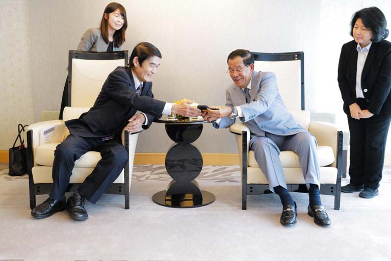 ក្នុងឱកាសនេះ សម្តេចតេជោ បានថ្លែងអំណរគុណ និងវាយតម្លៃខ្ពស់ចំពោះតួនាទីនិងការចូលរួមចំណែកដ៏សំខាន់របស់សម្ព័ន្ធមិត្តភាពសភាជប៉ុន-កម្ពុជា ក្នុងការជម្រុញទំនាក់ទំនងទ្វេភាគីឱ្យកាន់តែស៊ីជម្រៅ ក៏ដូចជា ការសហការគ្នាជិតស្និទ្ធរវាងប្រទេសយើងទាំងពីរលើឆាកអន្តរជាតិ។ ជាងនេះទៀត សម្តេចតេជោ បានលើកទឹកចិត្តនិងស្នើឱ្យភាគីជប៉ុនបន្តជួយ កម្ពុជាក្នុងវិស័យដោះមីនតទៅទៀត ជាពិសេសចូលរួមចំណែកក្នុងការសម្រេចបាននូវគោលដៅ “កម្ពុជាគ្មានមីនឆ្នាំ ២០២៥” ឱ្យបានជោគជ័យ៕