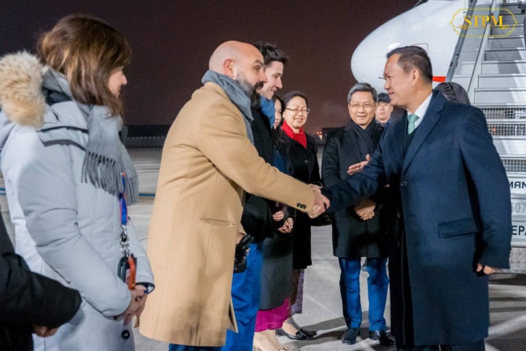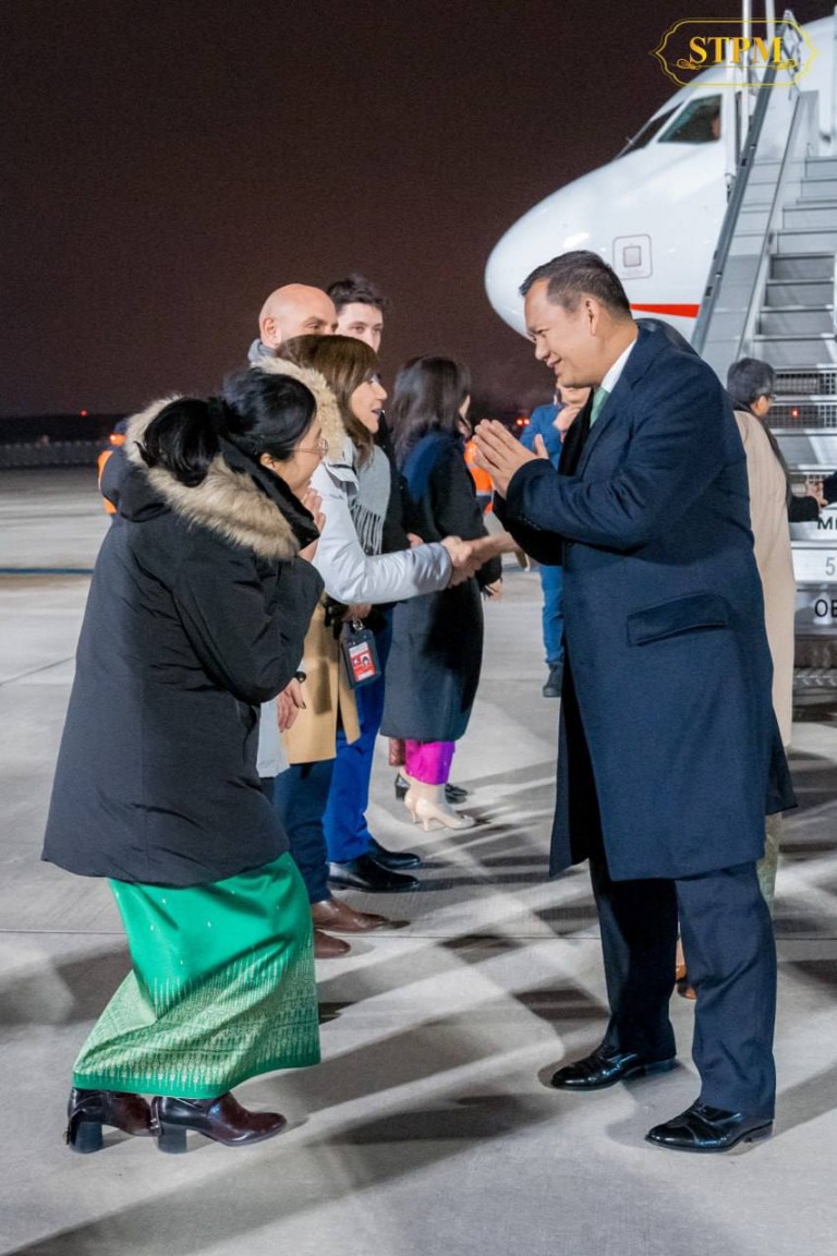 បន្ទាប់ពីចំណាយពេលធ្វើដំណើររយៈពេលប្រមាណជា១៧ម៉ោង តាមជើងហោះហើរពិសេសរបស់កម្ពុជា សម្តេចមហាបវរធិបតី ហ៊ុន ម៉ាណែត នាយករដ្ឋមន្ត្រីកម្ពុជា និងលោកជំទាវបណ្ឌិត ពេជ ចន្ទមុន្នី ហ៊ុនម៉ាណែត បានដឹកនាំគណៈប្រតិភូដល់ទីក្រុងប៉ារីស ប្រទេសបារាំងហើយនៅវេលាម៉ោង២៖៤០ទៀបភ្លឺថ្ងៃទី១៤ ខែមករា ឆ្នាំ២០២៤ ម៉ោងនៅកម្ពុជា ត្រូវនឹងវេលាម៉ោង ម៉ោង២០៖៤០យប់ថ្ងៃទី១៣ ខែមករា ម៉ោងនៅទីក្រុងប៉ារីស។ ដំណើរអញ្ជើញដល់របស់សម្តេចធិបតី និងលោកជំទាវបណ្ឌិត ព្រមទាំងគណៈប្រតិភូទទួលបានការស្វាគមន៍យ៉ាងកក់ក្តៅពីឯកអគ្គរាជទូត និងមន្ត្រីស្ថានទូតខ្មែរប្រចាំនៅប្រទេសបារាំង។