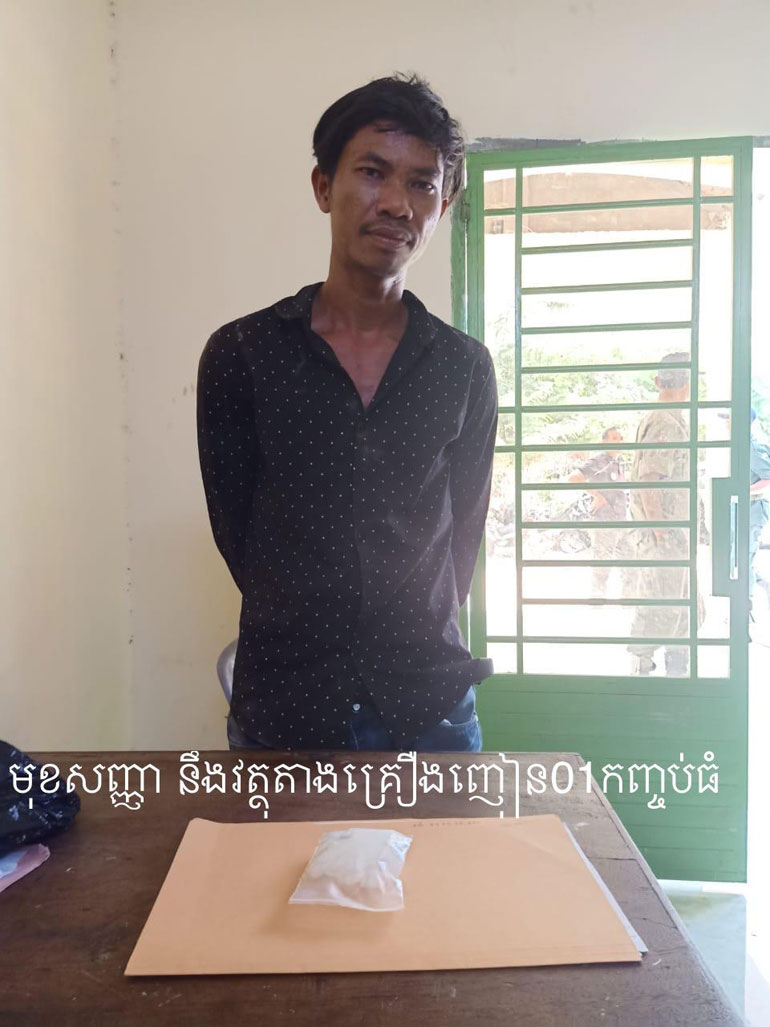 ខេត្តកំពង់ស្ពឺ ៖ ជនសង្ស័យម្នាក់ជាមុខសញ្ញាជួញដូរដោយខុសច្បាប់នូវសារធាតុញៀនយ៉ាងសកម្មត្រូវបានសមត្ថកិច្ចជំនាញឃាត់ខ្លួនតាមដីកា លេខ 151របស់ចៅក្រមស៊ើបសួរចុះថ្ងៃទី24 ខែ05 ឆ្នាំ2019របស់ចៅក្រម ម៉ែន វណ្ណះសមត្ថកិច្ចជំនាញបានឃាត់ខ្លួនជនសង្ស័យនៅវេលាម៉ោង12 និង30នាទី ថ្ងៃទី 29 ខែកក្កដា ឆ្នាំ2019 នៅចំណុចភូមិអង្គតាឡឹក ឃុំសំបូរ ស្រុកសំរោងទង ខេត្តកំពង់ស្ពឺ ។