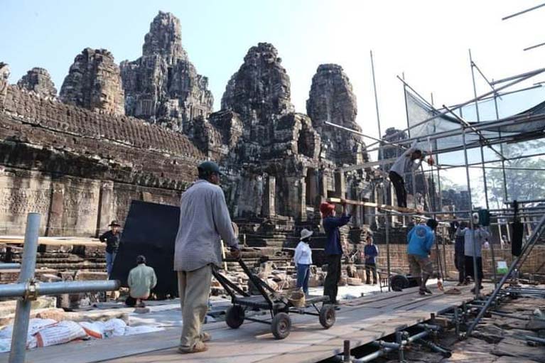 សៀមរាប..ក្រុមអ្នកជំនាញរបស់នាយកដ្ឋានអភិរក្សប្រាសាទ និងបុរាណវិទ្យា នៃអាជ្ញាធរជាតិអប្សរា បានរើគំនរផ្ទាំងថ្មជាច្រើនរយដុំ ដែលអ្នកអភិរក្សជំនាន់បារាំងនាដើមសតវត្សទី២០ ដើម្បីជួសជុលកម្រាលដែលស្រុត ព្រមទាំងរៀបចំប្រព័ន្ធបង្ហូរទឹកបុរាណឡើងវិញ នៅរោងទងទី១ ផ្នែកខាងត្បូងឆៀងខាងលិចរបស់ប្រាសាទបាយ័ន។