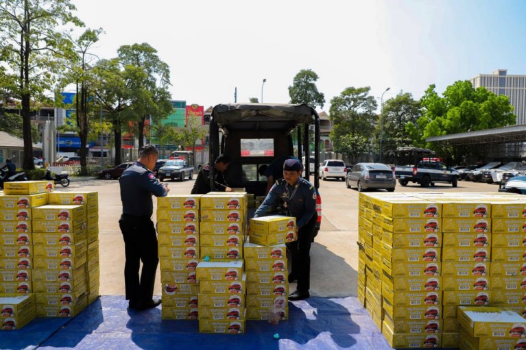នៅថ្ងៃទី០១ ខែកុម្ភៈឆ្នាំ២០២៤ លោកឧត្តមសេនីយ៍ឯក រ័ត្ន ស្រ៊ាង មេបញ្ជាការរង កងរាជអាវុធហត្ថលើផ្ទៃប្រទេស មេបញ្ជាការ កងរាជអាវុធហត្ថរាជធានីភ្នំពេញ ចាត់ឲ្យក្រុមការងារធ្វើការបែងចែកភេសជ្ជៈ ដែលទទួលបានការឧបត្ថម្ភពីសប្បុរសជន ជូនដល់តំណាងតាមបណ្តាមូលដ្ឋាន អាវុធហត្ថខណ្ឌទាំង១៤ ក៏ដូចជាអង្គភាពចំណុះសម្រាប់យកទៅចែកជូនបន្តដល់ បងប្អូននាយទាហាន-នាយទាហានរង និងពលទាហាន នៃកងរាជអាវុធហត្ថរាជធានីភ្នំពេញ ដោយម្នាក់ៗទទួលបានភេសជ្ជៈចំនួន ០១កេស ដូចៗគ្នា។