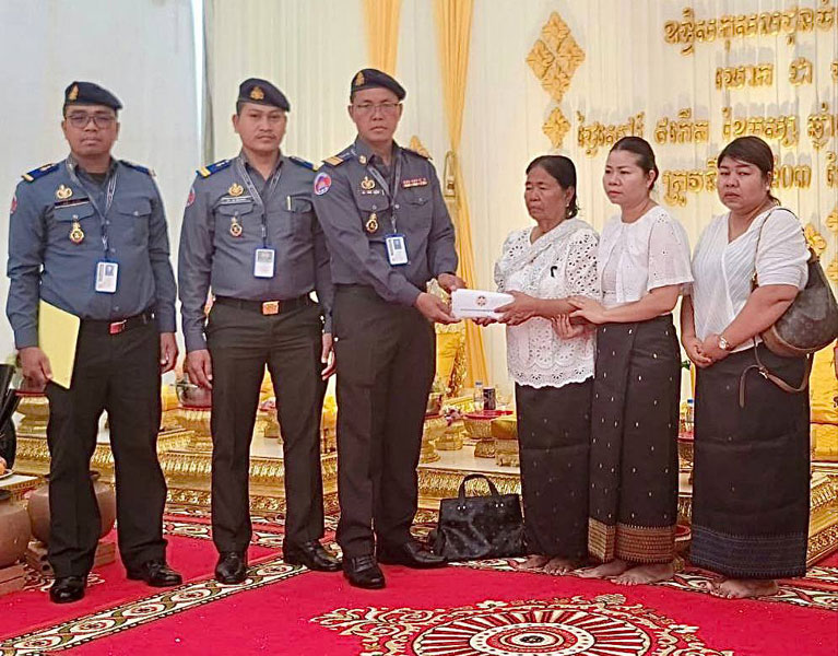នៅថ្ងៃទី០៤ ខែកុម្ភៈ ឆ្នាំ២០២៤ លោកវរសេនីយ៍ឯក ជឹម ឬទ្ធី មេបញ្ជាការមូលដ្ឋានអាវុធហត្ថខណ្ឌពោធិ៍សែនជ័យ បានចាត់តំណាងប្រគល់ថវិកាដែលមានការចូលរួមពី នាយ-នាយរង នៃអាវុធហត្ថខណ្ឌ ក្នុងស្មារតីសាមគ្គីភាព សរុបចំនួន ២,៨១០,០០០៛ (ពីរលានប្រាំបីសែនមួយម៉ឺនរៀល) ចូលរួមរំលែកទុក្ខដ៏ក្រៀមក្រំដល់គ្រួសារ លោកវរសេនីយ៍ត្រី សើន កែវវណ្ណធី មេបញ្ជាការរងខណ្ឌ ដែលបងថ្លៃប្រុសរបស់លោកទទួលមរណៈភាព ដោយរោគាពាធ និងសូមបួងសួងដល់វិញ្ញាណក្ខន្ធបានទៅកាន់សុគតិភពកុំបីឃ្លៀងឃ្លាតឡើយ៕