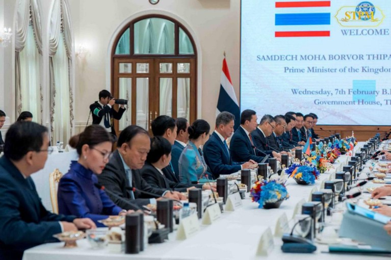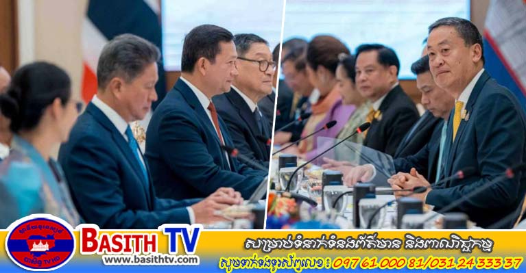 សម្តេចធិបតី បានសម្តែងនូវក្តីរីករាយចំពោះជំនួបពិភាក្សាការងារទ្វេភាគីនេះ និងបានថ្លែងអំណរគុណ ឯកឧត្តមនាយករដ្ឋមន្ត្រីថៃ ដែលបានទទួលបដិសណ្ឋារកិច្ចស្វាគមន៍យ៉ាងកក់ក្តៅចំពោះដំណើរទស្សនកិច្ចផ្លូវការលើកទី១ របស់ សម្តេចធិបតី ក្នុងនាមជានាយករដ្ឋមន្ត្រី នៅព្រះរាជាណាចក្រថៃ នាឱកាសនេះ។ សមភាគីទាំងពីរ បានវាយតម្លៃខ្ពស់លើលទ្ធផលនៃកិច្ចសហប្រតិបត្តិការទ្វេភាគីកន្លងមក និងបានផ្លាស់ប្ដូរយោបល់ពីការពង្រឹង និងពង្រីកកិច្ចសហប្រតិបត្តិការរវាងប្រទេសទាំងពីរ លើវិស័យជាច្រើន ដែលរួមមាន៖ វិស័យនយោបាយ សេដ្ឋកិច្ច ការពារជាតិ សន្ដិសុខ ពាណិជ្ជកម្ម វិនិយោគ ទេសចរណ៍ ការងារ និងវិស័យថាមពល។ ក្នុងក្របខ័ណ្ឌ នៃការពង្រឹងទំនាក់ទំនងនយោបាយ និងការទូត សមភាគីទាំងពីរ បានឯកភាពលើការតំឡើងកម្រិតទំនាក់ទំនងទ្វេភាគី ពី “ការពង្រឹងភាពជាដៃគូដើម្បីសន្ដិភាព និងវិបុលភាព” ទៅជា “ភាពជាដៃគូយុទ្ធសាស្ត្រ” ដើម្បីផលប្រយោជន៍ទៅវិញទៅមក សម្រាប់ជាតិ និងប្រជាជននៃប្រទេសទាំងពីរ។ ទន្ទឹមគ្នានេះ សមភាគីទាំងពីរ ក៏បានពិភាក្សាអំពីកិច្ចការក្នុងតំបន់ និងសកល ដោយបានបង្ហាញនូវការពេញចិត្តចំពោះការគាំទ្រគ្នាទៅវិញទៅមកនៅលើវេទិកាអន្តរជាតិ និងការជំរុញកិច្ចសហប្រតិបត្តិការក្នុងការប្រយុទ្ធប្រឆាំងនឹងឧក្រិដ្ឋកម្មឆ្លងដែន ការបោកប្រាស់តាមប្រព័ន្ធអនឡាញ និងការកសាងព្រំដែនប្រទេសទាំងពីរទៅជាព្រំដែនសន្ដិភាព និងវិបុលភាព។