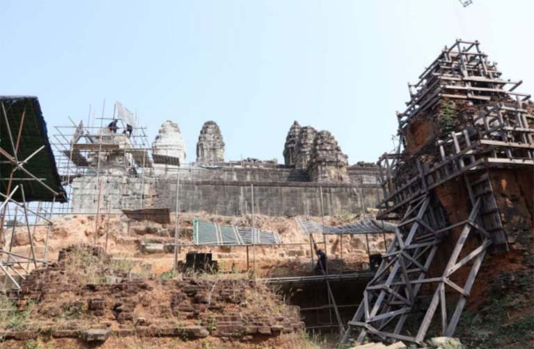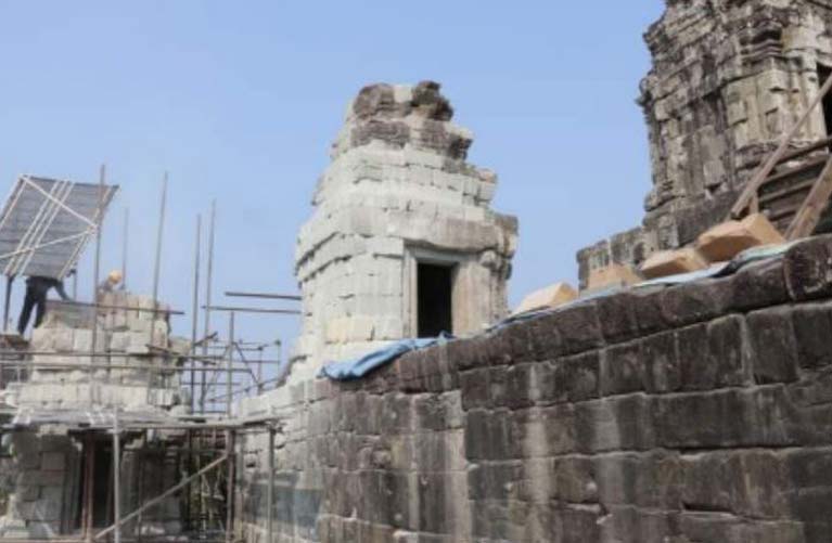 ក្រុមបច្ចេកទេស កំពុងតែរុះរើជណ្តើរ រួចបុកបង្ហាប់ បន្ថែមគ្រឹះថ្មី ដើម្បីរៀបចំជួសជុលវាឡើងវិញ ចំណែកឯជញ្ជាំង ត្រូវពង្រឹងឱ្យរឹងមាំឱ្យស្របតាមធម្មនុញ្ញអង្គរ ដែលបានកំណត់ដោយគណៈកម្មាធិការអន្តរជាតិសម្របសម្រួលកិច្ចគាំពារ និងអភិវឌ្ឍន៍តំបន់អង្គរ។