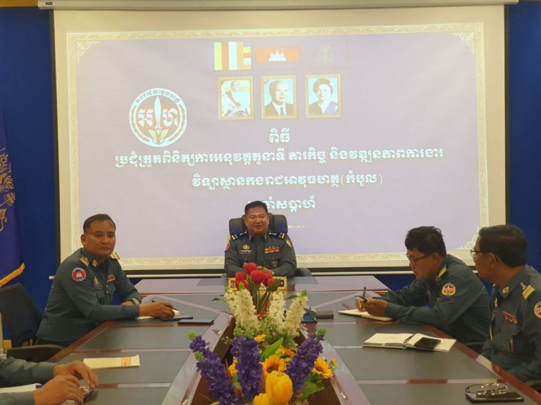 ភ្នំពេញ៖ នៅវិទ្យាស្ថានកងរាជអាវុធហត្ថកំបូល នាព្រឹកថ្ងៃចន្ទ ទី១២ ខែកុម្ភៈ ឆ្នាំ២០២៤ បានប្រារព្ធពិធីប្រជុំត្រួតពិនិត្យ បូកសរុបរបាយការណ៍ការងារ ក្រោមអធិបតីភាពលោកឧត្ដមសេនីយ៍ទោ តាត ចន្ថា នាយកវិទ្យាស្ថានកងរាជអាវុធហត្ថ(កំបូល) ដោយមានសមាសភាពចូលរួមលេខាធិការដ្ឋាន ប្រធានមន្ទីរទាំង៥ ប្រធានក្រុមស្រាវជ្រាវវិទ្យាសាស្ត្រហ្វឹកហ្វឺន ប្រធានក្រុមយោធាចារ្យ ការិយាល័យហិរញ្ញវត្ថុ និងបុគ្គលិកដែលមានការពាក់ព័ន្ធ។