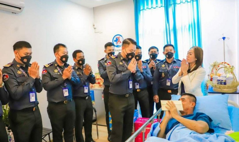 (កំពង់ចាម) ៖ នៅថ្ងៃទី២៣ ខែកុម្ភៈ ឆ្នាំ២០២៤ លោកឧត្តមសេនីយ៍ឯក រ័ត្ន ស្រ៊ាង បានចាត់ឲ្យ លោកវរសេនីយ៍ឯក សៀ ទីន នាយសេនាធិការ កងរាជអាវុធហត្ថរាជធានីភ្នំពេញ ដឹកនាំក្រុមការងារ នាំយកថវិកា ចំនួន ៥,០០០ដុល្លារ រួមនឹង ទឹកសុទ្ធ ៥កេស, ទឹកដោះគោបឺត ៣កេស យកទៅប្រគល់ជូន លោកឧត្តមសេនីយ៍ត្រី គង់ គីនី មេបញ្ជាការរង នៃកងរាជអាវុធហត្ថរាជធានីភ្នំពេញ ដែលបានធ្លាក់ខ្លួនឈឺធ្ងន់ ត្រូវការព្យាបាលរយៈពេលយូរ និងត្រូវការថវិកាជាចាំបាច់។