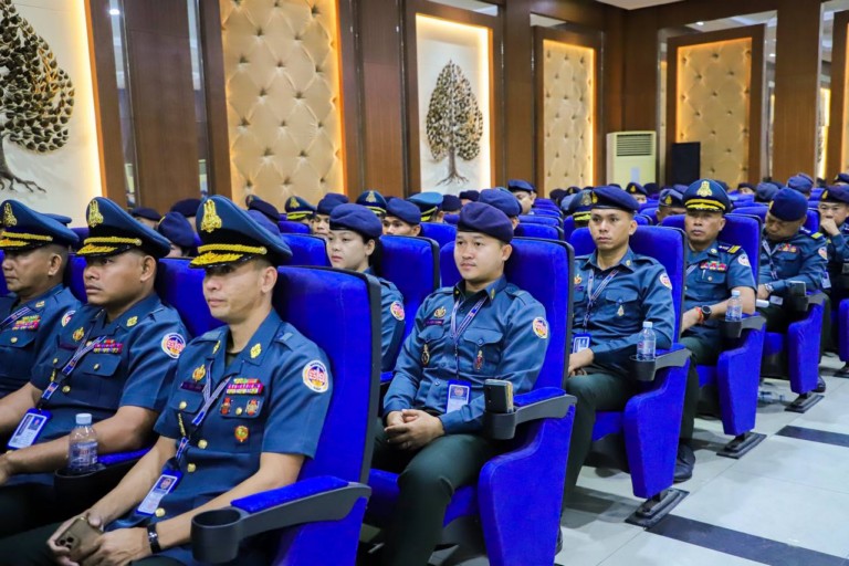 លោកឧត្ដមសេនីយ៍ឯក រ័ត្ន ស្រ៊ាង បានពាំនាំនូវប្រសាសន៍សួរសុខទុក្ខរបស់ លោកនាយឧត្តមសេនីយ៍ សៅ សុខា អគ្គមេបញ្ជាការរង នៃកងយោពលខេមរភូមិន្ទ មេបញ្ជាការកងរាជអាវុធហត្ថលើផ្ទៃប្រទេស ជូនចំពោះ នាយទាហាន នាយទាហានរង នៃកងរាជអាវុធហត្ថរាជធានីភ្នំពេញ ដែលទទួលបានមុខតំណែង និងឋានន្តរសក្តិថ្មីនាពេលនេះ និងបានណែនាំ ឲ្យបន្តអនុវត្ត ភារកិច្ច និងបទបញ្ជាទាំងឡាយដែលថ្នាក់លើបានដាក់ចុះឲ្យបានល្អ ប្រកបដោយវិន័យសណ្ដាប់ធ្នាប់ ពង្រឹងការងារសន្តិសុខសង្គមជូនប្រជាពលរដ្ឋឱ្យបានទាន់ពេលវេលា និងរួមគ្នាទប់ស្កាត់បង្ការបង្ក្រាបបទល្មើស គ្រប់ប្រភេទបានកាន់តែប្រសើរ ជាពិសេស ត្រូវយកចិត្តទុកដាក់អនុវត្តឲ្យបានម៉ឹងម៉ាត់នូវអនុសាសន៍ណែនាំរបស់សម្តេចមហាបវរធិបតី ហ៊ុន ម៉ាណែត នាយករដ្ឋមន្ត្រីនៃព្រះរាជាណាចក្រកម្ពុជា ក្នុងការបោសសម្អាតការជួញដូរគ្រឿងញៀន ជាអត្ថិភាពទី១ដែលត្រូវអនុវត្តន៍ និងត្រូវត្រៀមចូលរួមអន្តរាគមន៍ជួយសង្គ្រោះប្រជាពលរដ្ឋដែលទទួលរងដោយគ្រោះមហន្តរាយ ឬហេតុការណ៍ផ្សេងៗដែលកើតមានឡើង ក្នុងភូមិសាស្ត្រធានីភ្នំពេញ ហើយប្រសិនបើមានសមាជិកអាវុធហត្ថរាជធានីភ្នំពេញណាម្នាក់ មានការពាក់ព័ន្ធជាមួយគ្រឿងញៀន នឹងត្រូវបានស្នើសុំបណ្តេញចេញពីក្របខណ្ឌដោយគ្មានលើកលែង ដូច្នេះកម្លាំងអាវុធហត្ថរាជធានីភ្នំពេញ ទាំងអស់ត្រូវតែជៀសអោយឆ្ងាយ ពីគ្រឿងញៀនជាដាច់ខាត។