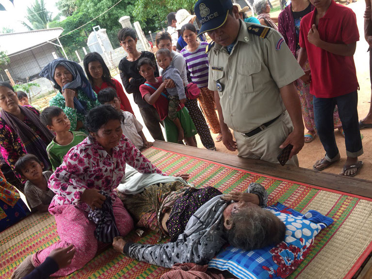 ខេត្តកំពង់ស្ពឺ ៖ កូនតិរិច្ឆានណោខឹងសុំលុយម្ដាយបង្កើតទៅទិញថ្នាំញៀនជក់ មិនបានយកឈើជ្រុងវាយទៅលើម្ដាយបណ្ដាលឲ្យដេកស្លាប់យ៉ាងអាណោចអាធ៌មនៅដីឡូត៏ខាងមុខផ្ទះរបស់ខ្លួន ។