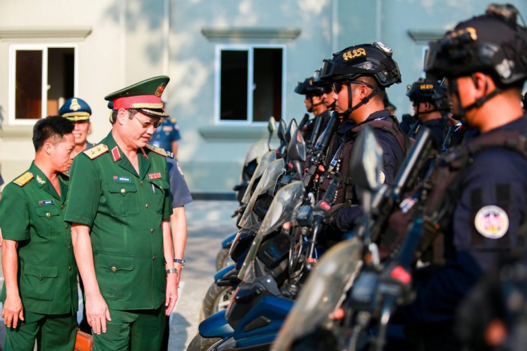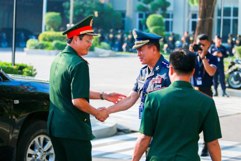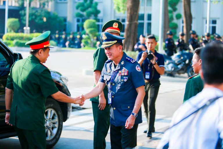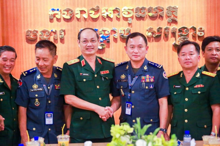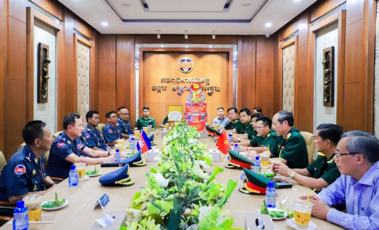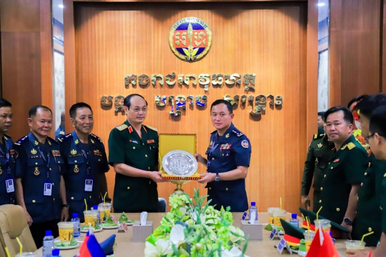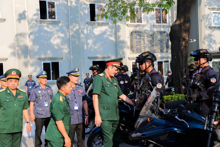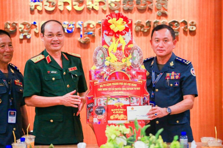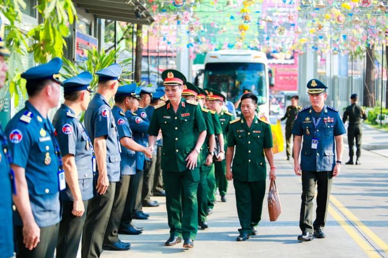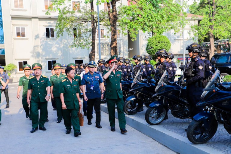 នៅថ្ងៃទី០៦ ខែមេសា ឆ្នាំ២០២៤ ឯកឧត្តម ឧត្តមសេនីយ៍ឯក រ័ត្ន ស្រ៊ាង អមដោយមេបញ្ជាការរង នាយសេនាធិការ នាយសេនាធិការរង ប្រធានមន្ទីរ និងមេបញ្ជាការមូលដ្ឋានខណ្ឌទាំង១៤ បានធ្វើបដិសណ្ឋារកិច្ច គណៈប្រតិភូយោធាទីក្រុងហូជីមិញ នៃកងទ័ពប្រជាជន វៀតណាម ដឹកនាំដោយ ឯកឧត្តម ឧត្តមសេនីយ៍ទោ ង្វៀន វ៉ាន់ណាម មេបញ្ជាការ បញ្ជាការដ្ឋានយោធាទីក្រុងហូជីមិញ នៃកងទ័ពប្រជាជនវៀតណាម ជាប្រធានគណៈប្រតិភូ ដែលបានអញ្ជើញមកដល់បញ្ជាការដ្ឋាន កងរាជអាវុធហត្ថរាជធានីភ្នំពេញ ដើម្បីជួបសំណេះសំណាលសួរសុខទុក្ខ និងជូនពរ ក្នុងឱកាសបុណ្យចូលឆ្នាំថ្មីប្រពៃណីជាតិខ្មែរ។