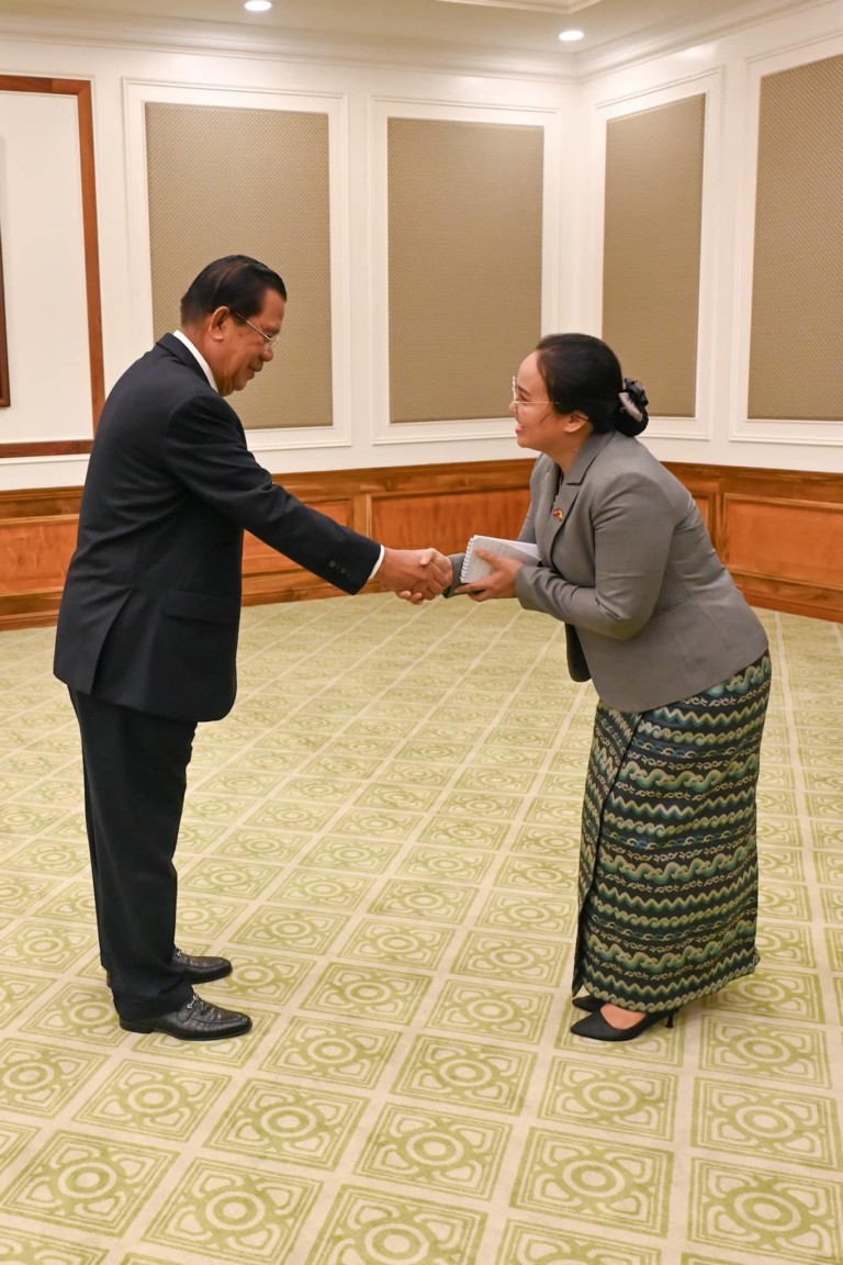 ជាកិច្ចឆ្លើយតប ឯកឧត្តម ឯកអគ្គរដ្ឋទូត បានកើតសរសើរ និងថ្លែងអំណរគុណចំពោះ សម្ដេចតេជោ ដែលបានទទួលជួបឯកឧត្តម និងប្រតិភូនាពេលនេះ និងអបអរសាទរចំពោះ សម្ដេចនិងគណបក្សប្រជាជនកម្ពុជា ដែលការបោះឆ្នោតព្រឹទ្ធសភាកន្លងទៅទទួលបានជោគជ័យ និងជាងនេះទៅទៀតគឺ សម្ដេចតេជោ ត្រូវបានជ្រើសតាំងជាប្រធានព្រឹទ្ធសភានៃព្រះរាជាណាចក្រកម្ពុជា។ ជាមួយគ្នានេះ ឯកឧត្តមក៏បានពាំនាំនូវការផ្ដាំផ្ដាំផ្ញើ សួរសុខទុក្ខពី អតីត ឯកអគ្គរដ្ឋទូតមីយ៉ាន់ម៉ា មុននេះ ដែលបានត្រឡប់ទៅប្រទេសមីយ៉ាន់ម៉ាវិញដោយពុំបានជម្រាបលា ថ្នាក់ដឹកនាំកម្ពុជាដោយសារពេលវេលាមិនអំណោយផល។