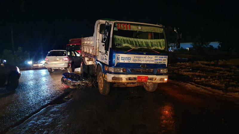 ខេត្តកំពង់ស្ពឺ ៖ រថយន្តបែនដឹកដីម៉ាកហ៊ីណូ បើកបត់ឆ្លងផ្លូវ បុកម៉ូតូរបួសធ្ងន់ធ្ងរ02នាក់ទៀតហើយ ខណៈបញ្ច្រាស់ទិសគ្នា ។