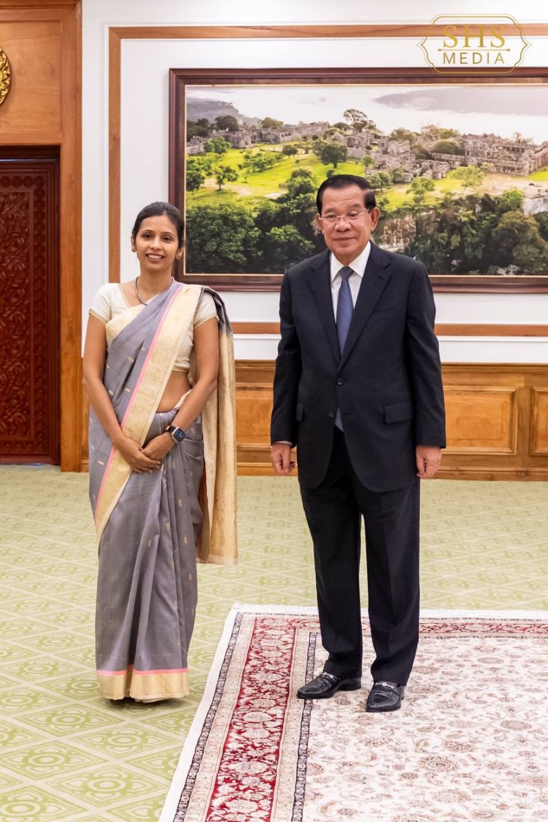 ជាកិច្ចចាប់ផ្ដើម សម្ដេចតេជោ បានសម្តែងនូវក្ដីរីករាយដែលបានជួប លោកជំទាវ ឯកអគ្គរដ្ឋទូតនៃសាធារណរដ្ឋឥណ្ឌាប្រចាំព្រះរាជាណាចក្រកម្ពុជា បន្ទាប់ពីបានជួបកាលពីឆ្នាំ២០២១ គឺនៅពេលសម្ដេចតេជោ ជានាយករដ្ឋមន្ត្រី ហើយនៅពេលនេះបានជួបក្នុងនាមសម្ដេចជាប្រធានព្រឹទ្ធសភា។ សម្ដេចបានរំលឹកថា កាលពីជំនួបលើកមុន សម្ដេច និងលោកជំទាវបានពិភាក្សាគ្នាលើការរៀបចំព្រះរាជដំណើរទស្សនកិច្ចរបស់ព្រះករុណាព្រះបាទសម្ដេច ព្រះបរមនាថ នរោត្តម សីហមុនីព្រះមហាក្សត្រ នៃព្រះរាជាណាចក្រកម្ពុជា យាងទៅកាន់ប្រទេសឥណ្ឌា ក្នុងឱកាសខួបទំនាក់ទំនងការទូតរវាងប្រទេសទាំងពីរ ហើយក៏បានពិភាក្សាគ្នាលើការត្រួសត្រាយទស្សនកិច្ចរបស់សម្ដេចធិបតី ដែលកាលនោះជាអគ្គមេបញ្ជាការកងទ័ពជើងគោក។ សម្ដេចបានមានប្រសាសន៍បន្តទៀតថា សម្ដេចកំពុងតាមដានដំណើរការបោះឆ្នោតនៅក្នុងប្រទេសឥណ្ឌាដែលជាប្រទេសប្រជាធិបតេយ្យមួយ។ សម្ដេចក៏បានសម្ដែងនៅការពេញចិត្តចំពោះការវិវត្តប្រកបដោយភាពរលូន នៃការបោះឆ្នោត ដែលបង្ហាញពីភាពជោគជ័យដ៏ធំធេង នៃប្រទេសប្រជាធិបតេយ្យដ៏ធំមួយនៅលើសកលលោក។