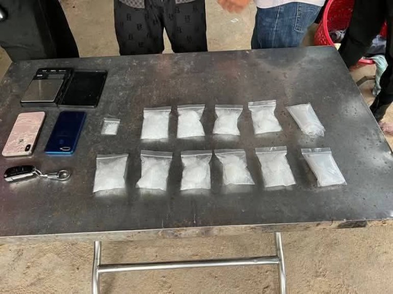 ចាប់យកវត្ថុតាងបានរួមមាន:ក្រាមពណ៌សថ្លា ចំនួន ១០កញ្ចប់ (ទម្ងន់=៤៥០ក្រាម),ថង់ច្រកគ្រឿងញៀនមួយចំនួន,ជញ្ជីងថ្លឹងគ្រឿងញៀន ចំនួន០១គ្រឿង,ទូរស័ព្ទចំនួន ០២គ្រឿង(ម៉ាកOppo និងIPhone X) និងរថយន្តចំនួន ០១គ្រឿង (ម៉ាកHYUNDAI ផ្លាកលេខ បាត់ដំបង 2D-9932)។