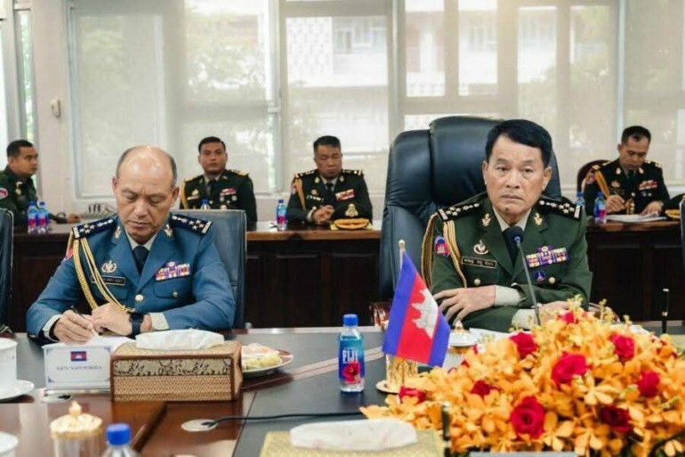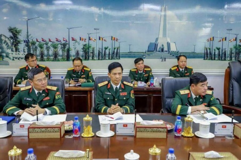 ក្នុងថ្ងៃទី១ នៃដំណើរទស្សនកិច្ចផ្លូវការ និងមិត្តភាពនៅកម្ពុជា គណៈប្រតិភូជាន់ខ្ពស់កងទ័ពប្រជាជនវៀតណាម ដឹកនាំដោយឯកឧត្តម នាយឧត្តមសេនីយ៍ ង្វៀន តឹនគឿង អនុរដ្ឋមន្ត្រីក្រសួងការពារប្រទេស និងជាប្រធានអគ្គសេនាធិការកងទ័ពប្រជាជនវៀតណាម បានជួបពិភាក្សាការងារទ្វេភាគីជាមួយឯកឧត្តម នាយឧត្តមសេនីយ៍ វង្ស ពិសេន អគ្គមេបញ្ជាការនៃកងយោធពលខេមរភូមិន្ទ នៅអគ្គបញ្ជាការដ្ឋាន។